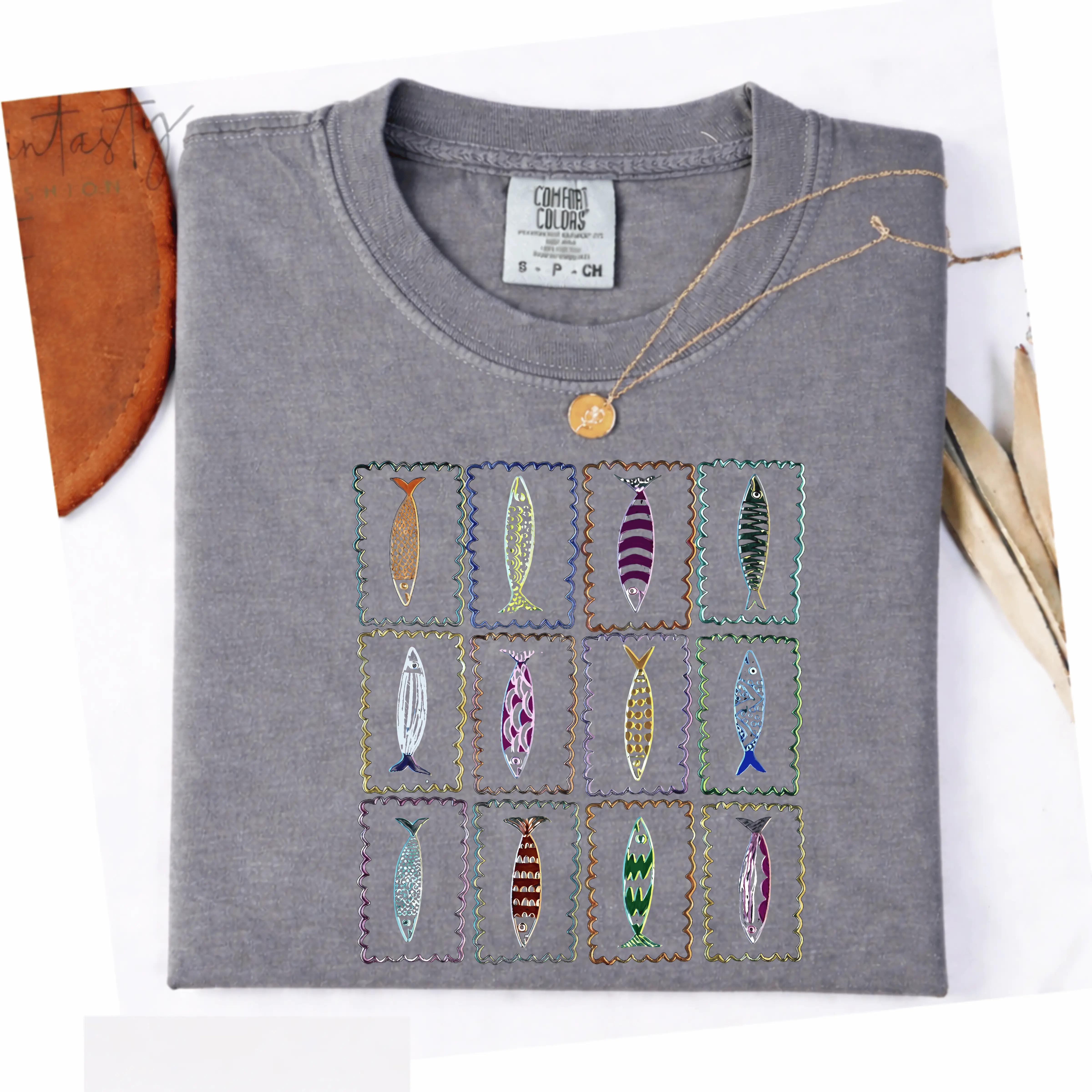 Comfort Colors Sardines Tinned Fish T-Shirt, Funny Vintage Canned Fish Tee, Retro Seafood Graphic Shirt, Quirky Food Lover Gift