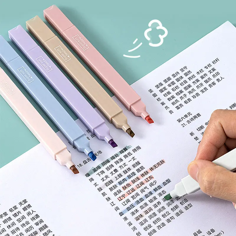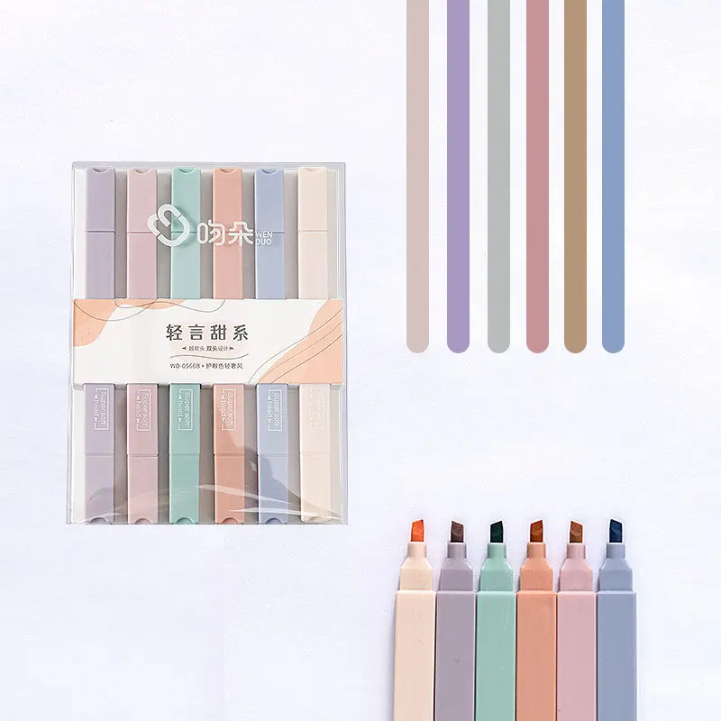 6-Pack Double-Sided Highlighters Cute School Supplies Pastel Marker Set for Students Study Notes