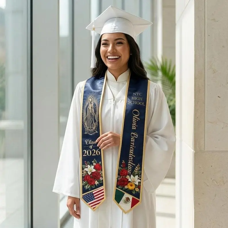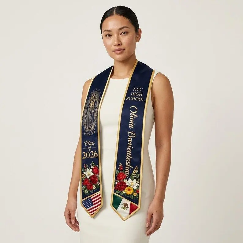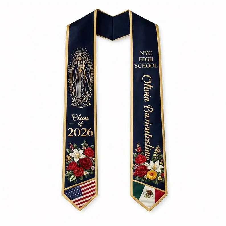 Crafted from high-quality, lightweight 100% polyester, this stole features a smooth finish that makes colors pop and ensures a comfortable fit throughout the ceremony. The all-over print capability allows for edge-to-edge customization, making it a unique keepsake for preschool graduations, high school commencements, or college degrees.