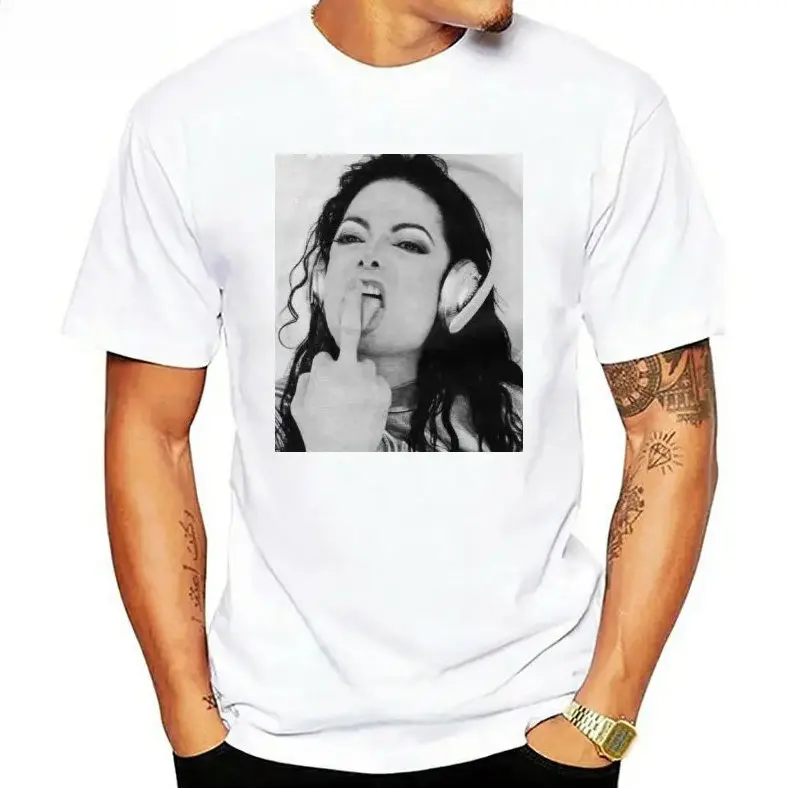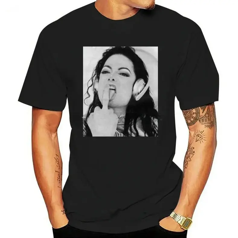5. Michael Jackson Finger Middile Hand Funny Cotton Fabric Crew Neck Short Sleeve Vintage Streetwear Trendy Top For Men For Women
