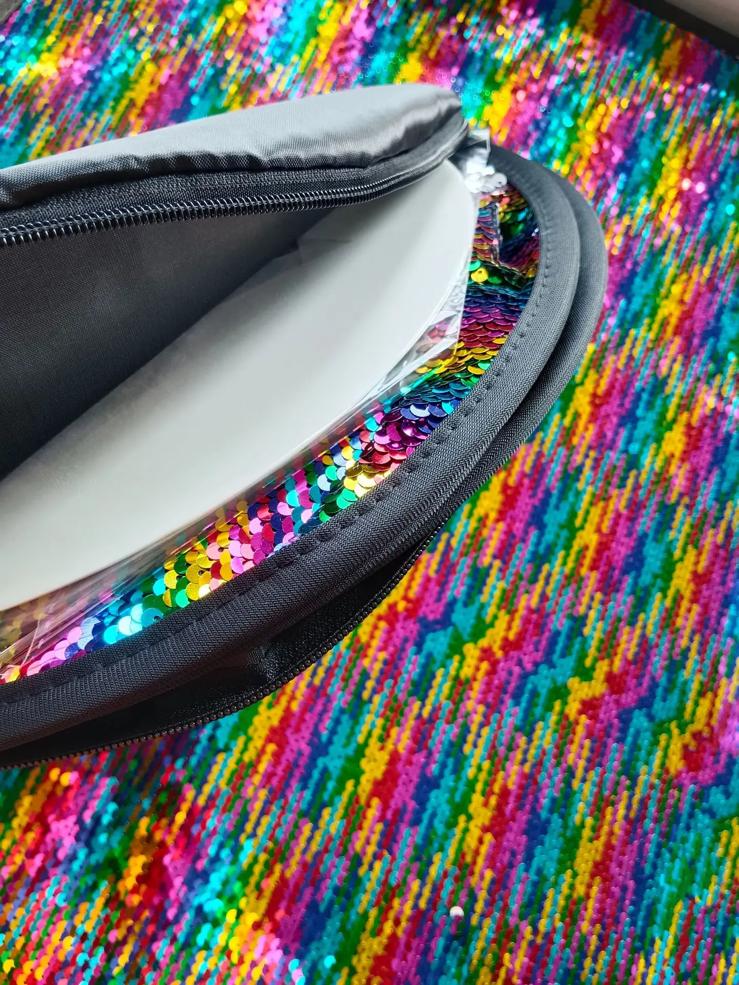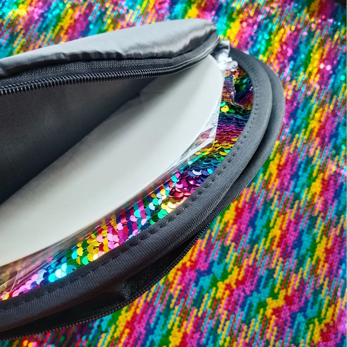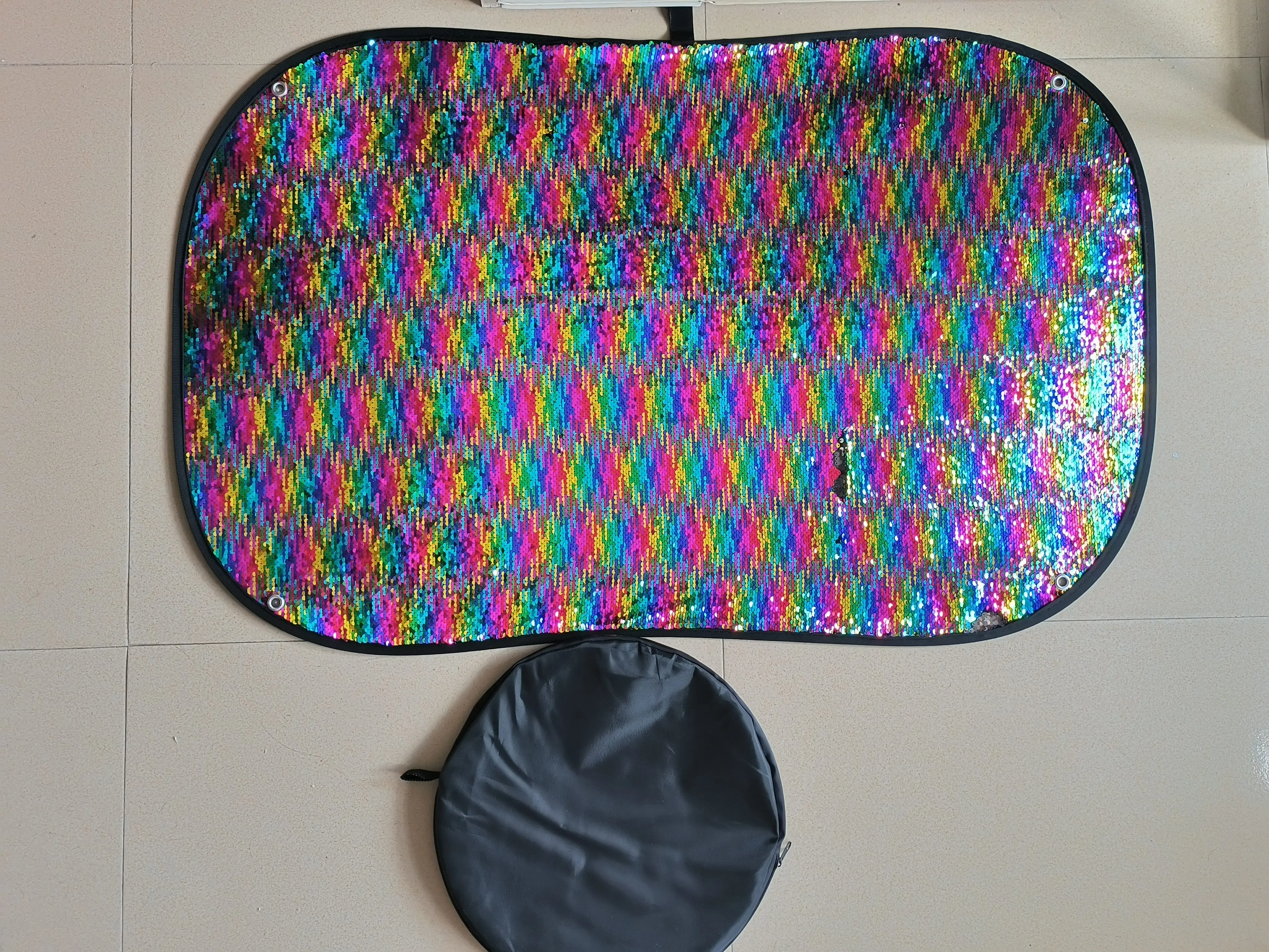 This jumbo 40x27-inch sensory sequin wall features tactile reversible sequins and 6 reusable shape stencils for creative and calming play. Designed for classrooms, sensory rooms, and at-home learning, this colorful mat encourages fine motor development, visual focus, and imaginative design. Pops open instantly and folds down into a travel case for easy storage