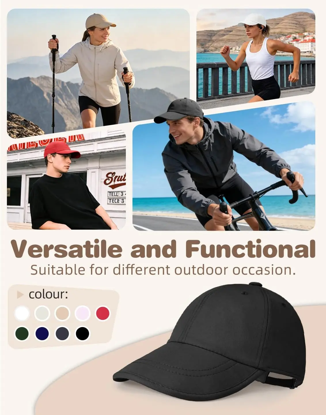 ·Packable Baseball Cap: This running hat can be fold into your bag, the soft brim allowing for flexible bending and shaping to create different styles. Suitable for travel and commuting scenarios.