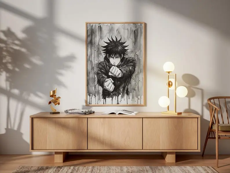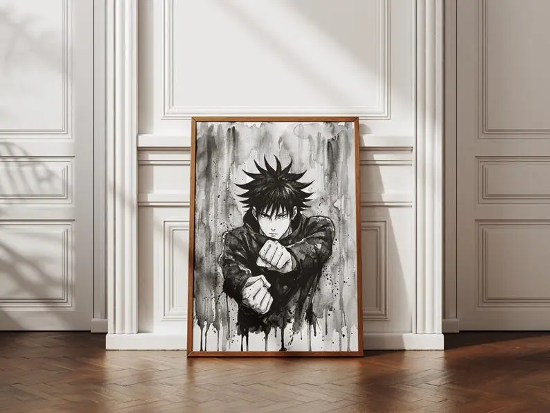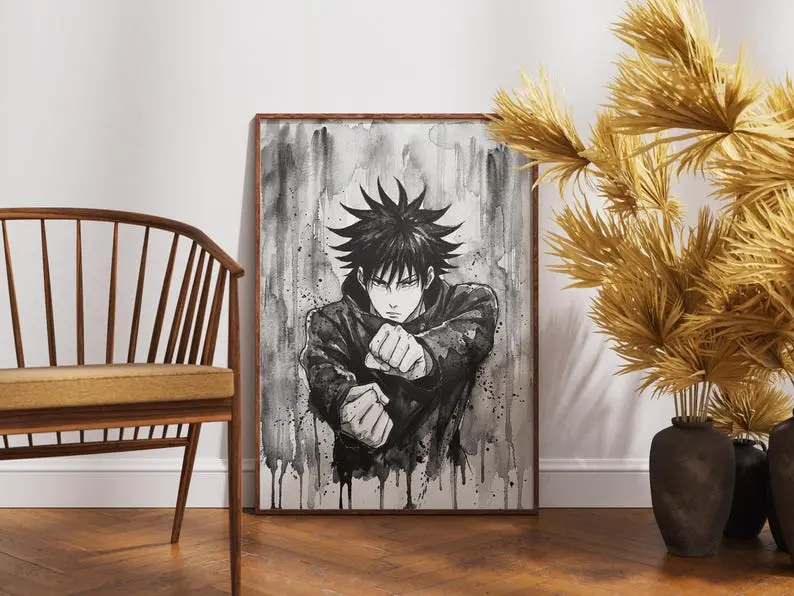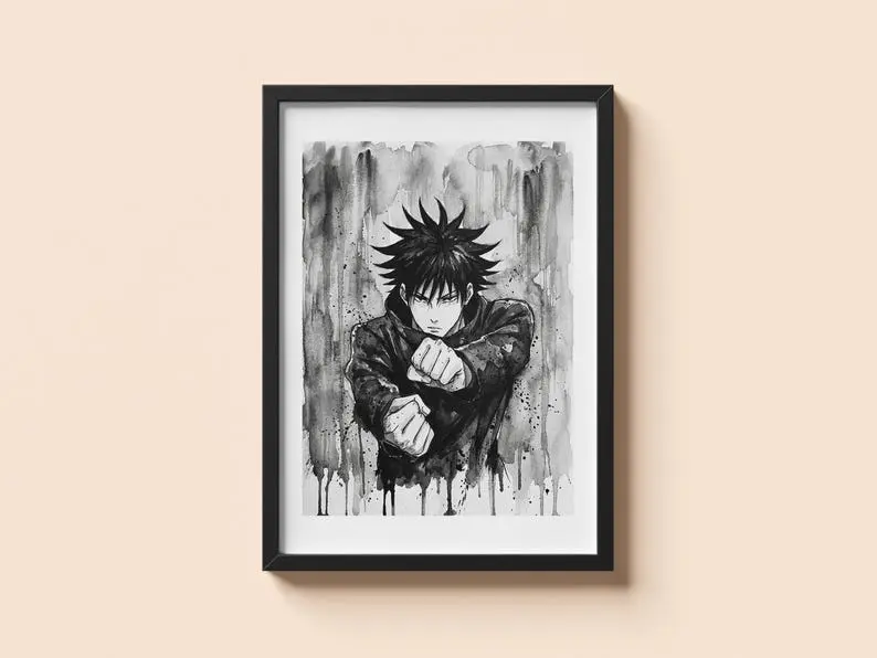 Jujutsu Kaisen Poster – Megumi Fushiguro, Anime Wall Art, Black White