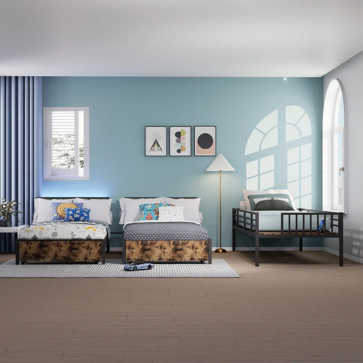 ·Multifunctional Convertible Triple Bunk Bed for Kids: Versatility meets durability. This smartly engineered bed effortlessly transforms from a unified multi-sleeper setup into three completely separate, standalone twin beds. Even when separated into three individual beds, each frame stands rock-solid to withstand the energetic lifestyle of growing kids. It's the perfect dynamic solution that adapts instantly to your evolving spatial needs.