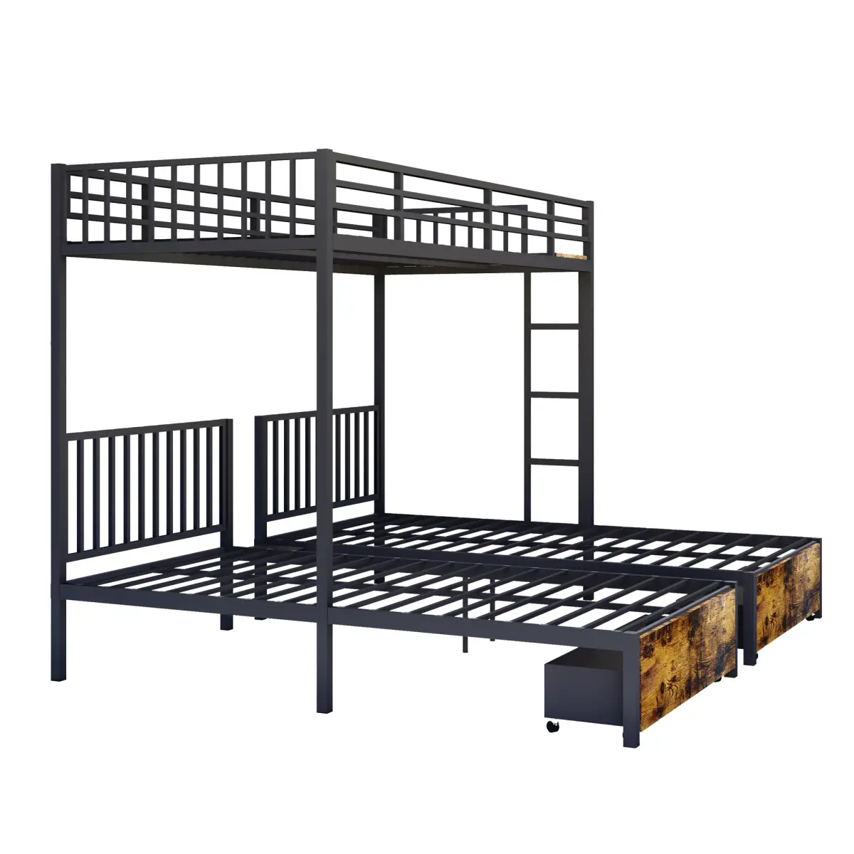 ·Triple Bunk Bed with Storage Drawers: Designed with two spacious under-bed drawers, this triple bunk bed transforms unused space into valuable storage. Maximize every inch of space. Keep daily essentials neatly tucked away and maintain a clutter-free, organized bedroom effortlessly.