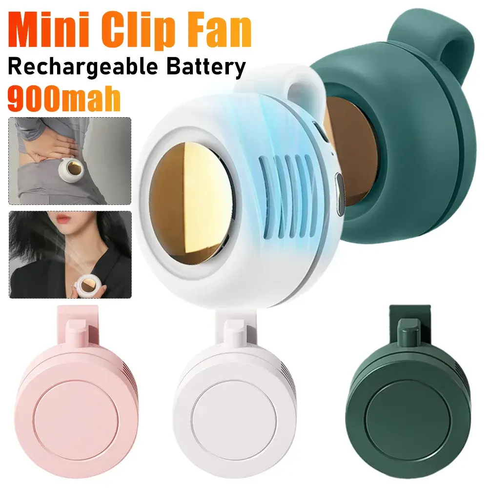 Portable Mini Clip Fan with 3 Speeds Shirt Fan 900Mah Rechargeable Battery Personal Body Fan for Outdoor Work Hiking Travel NONE