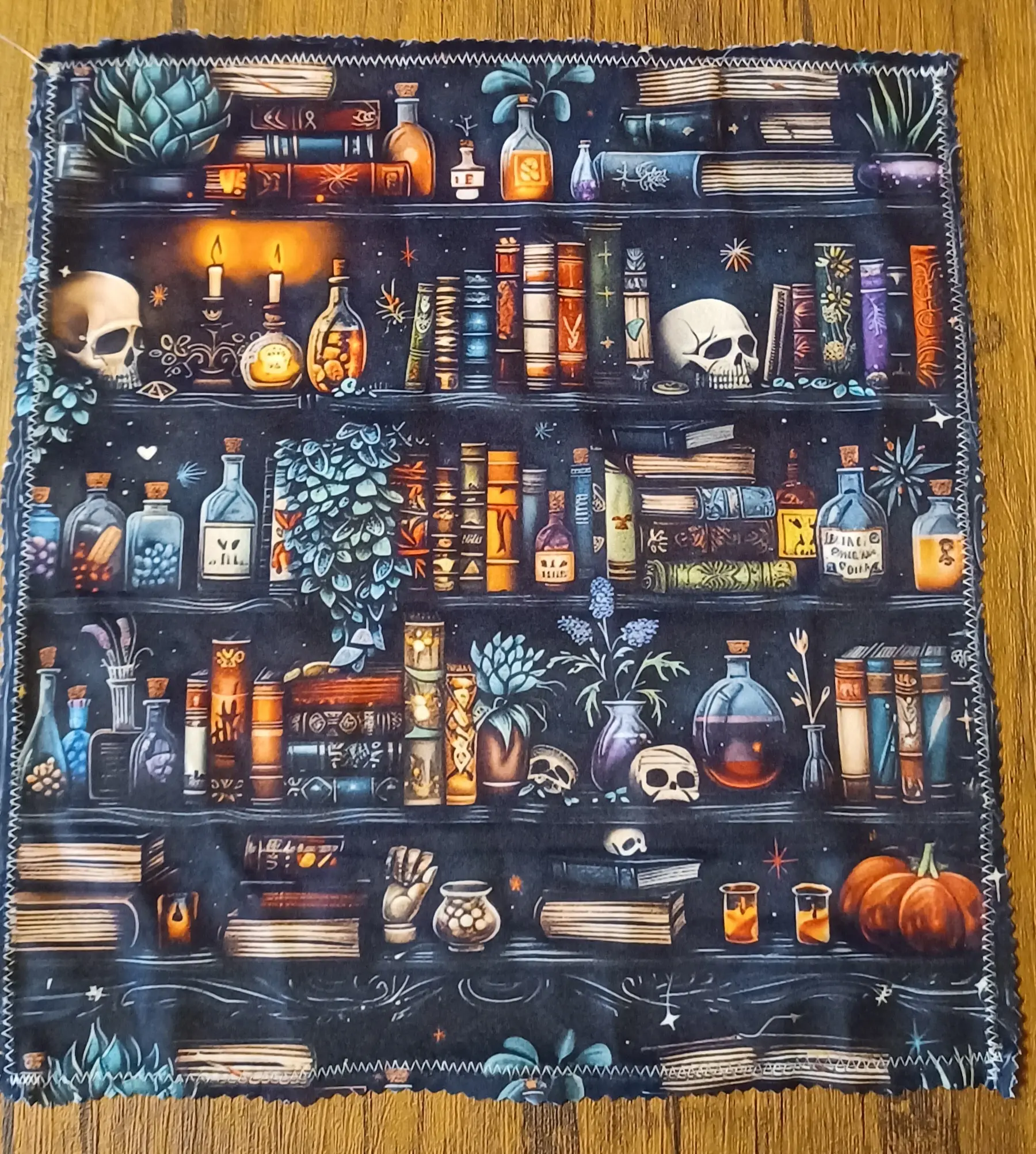 Velvety Tarot Cloth: Witchy Bookshelf, Skulls, Potions Reading mat.