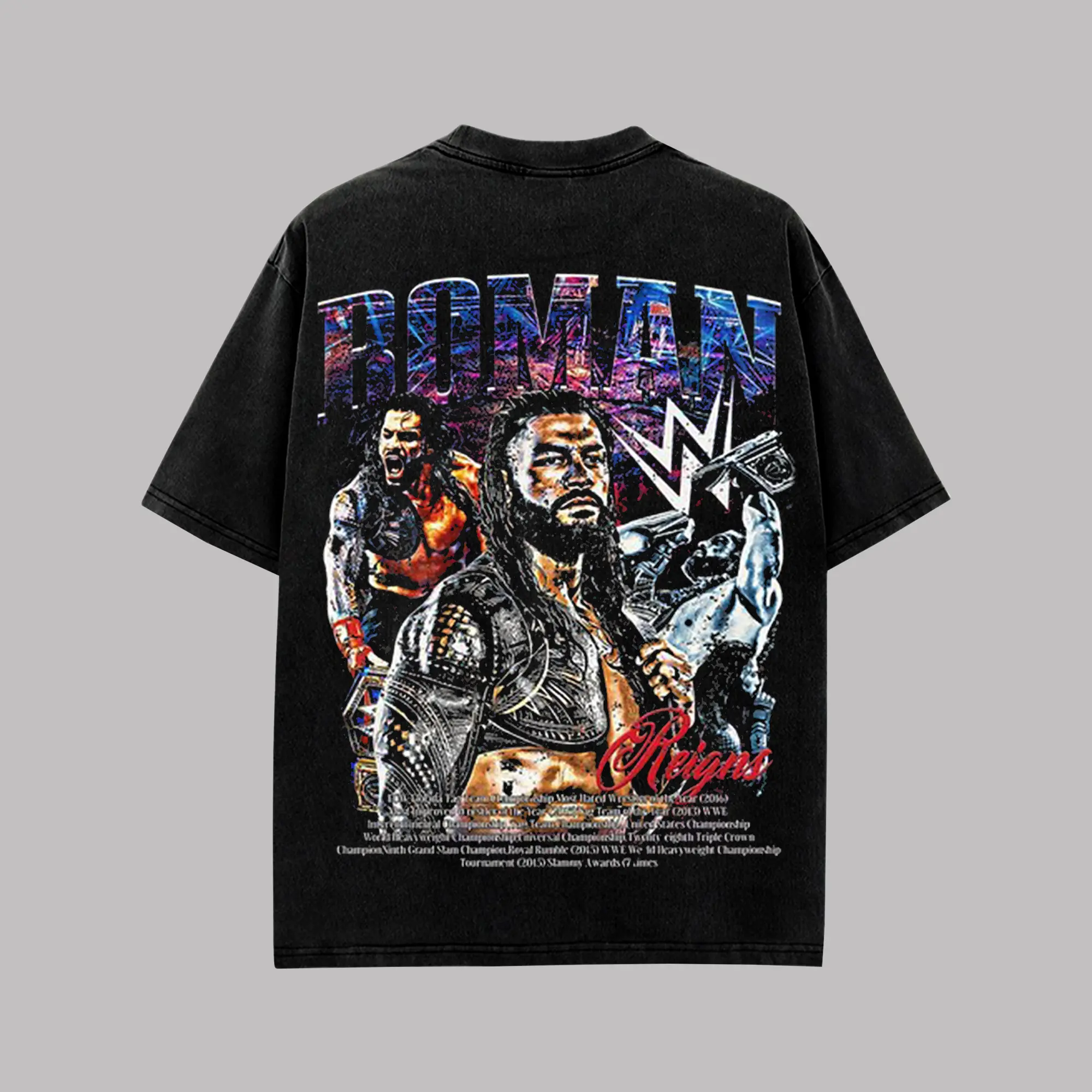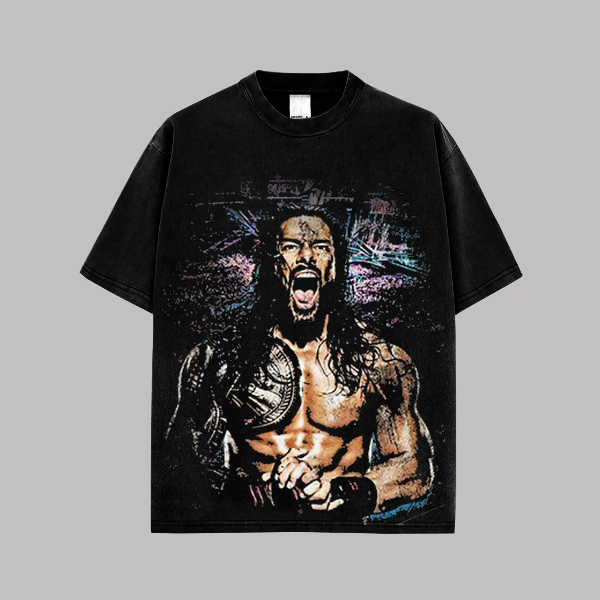 Roman Reigns WWE Tribal Chief Graphic Premium Cotton T-Shirt For Wrestling Fans, Head of the Table Roman Reigns Shirt, Bloodline Champion Retro Wrestler Fan Tee, Roman Empire Collector Gift Shirt
