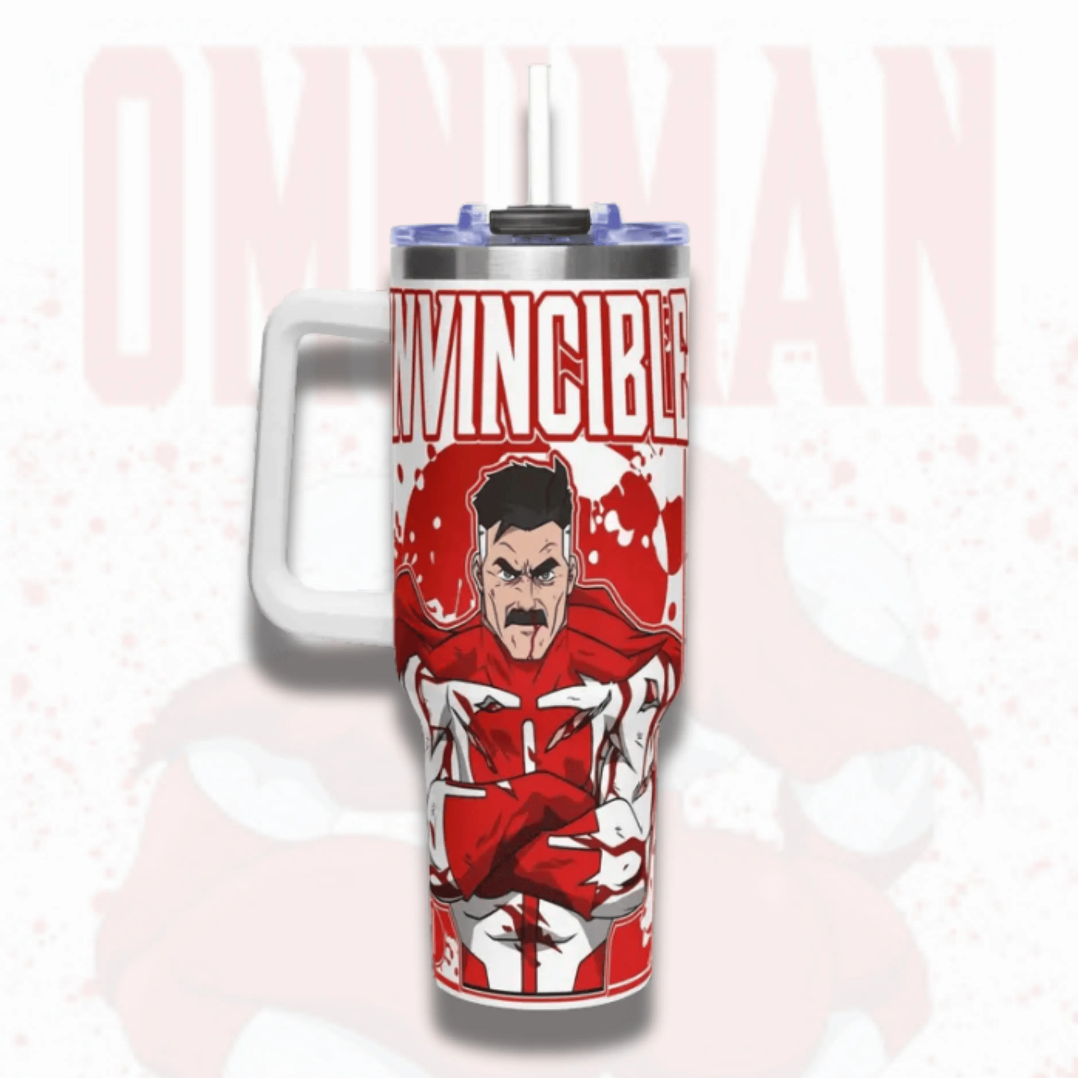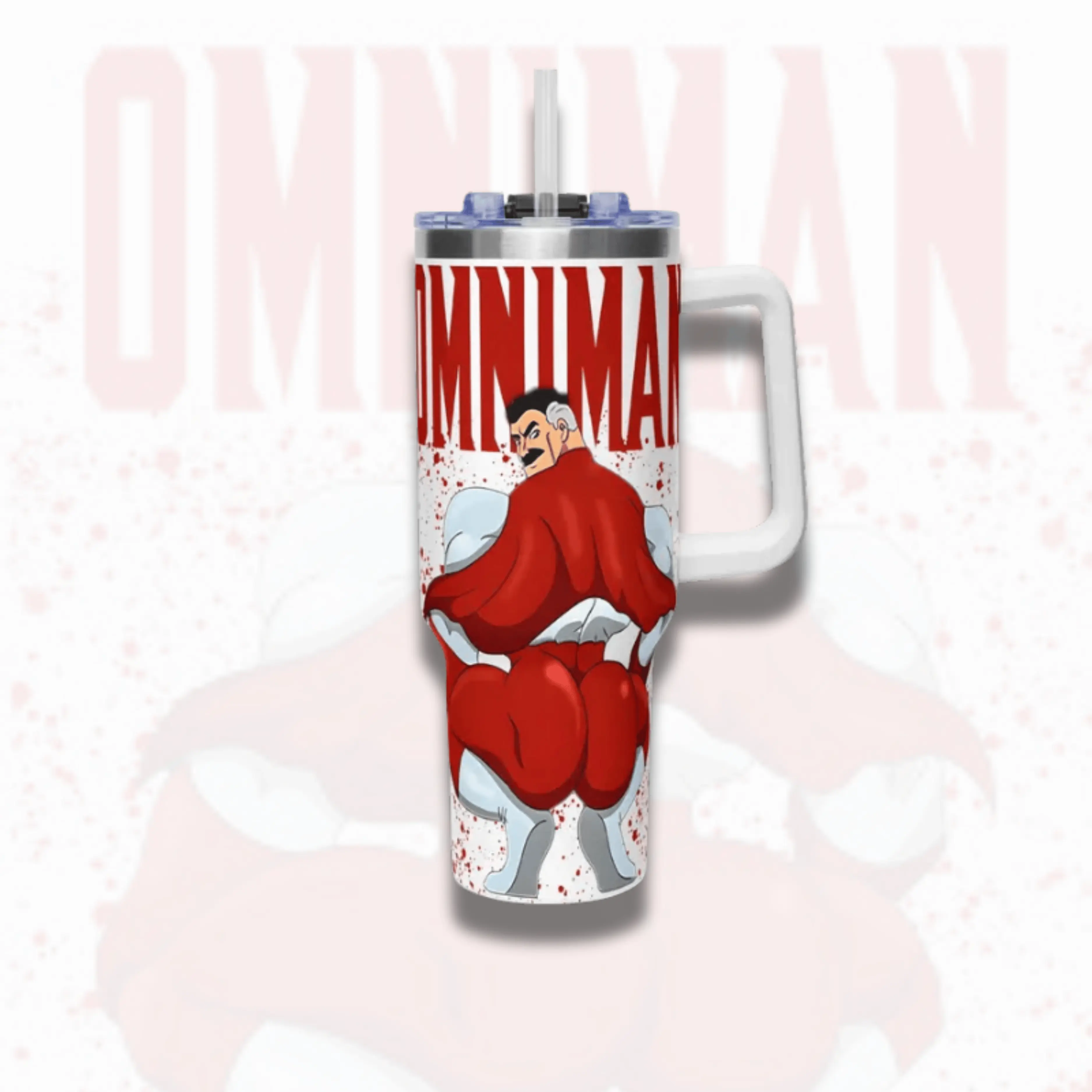 Thicc Omni Man Gya Tumbler With Handle, Omni Man Big Cheeks Meme Insulated Travel Mug 40oz 20oz, Invincible Gift Mug
