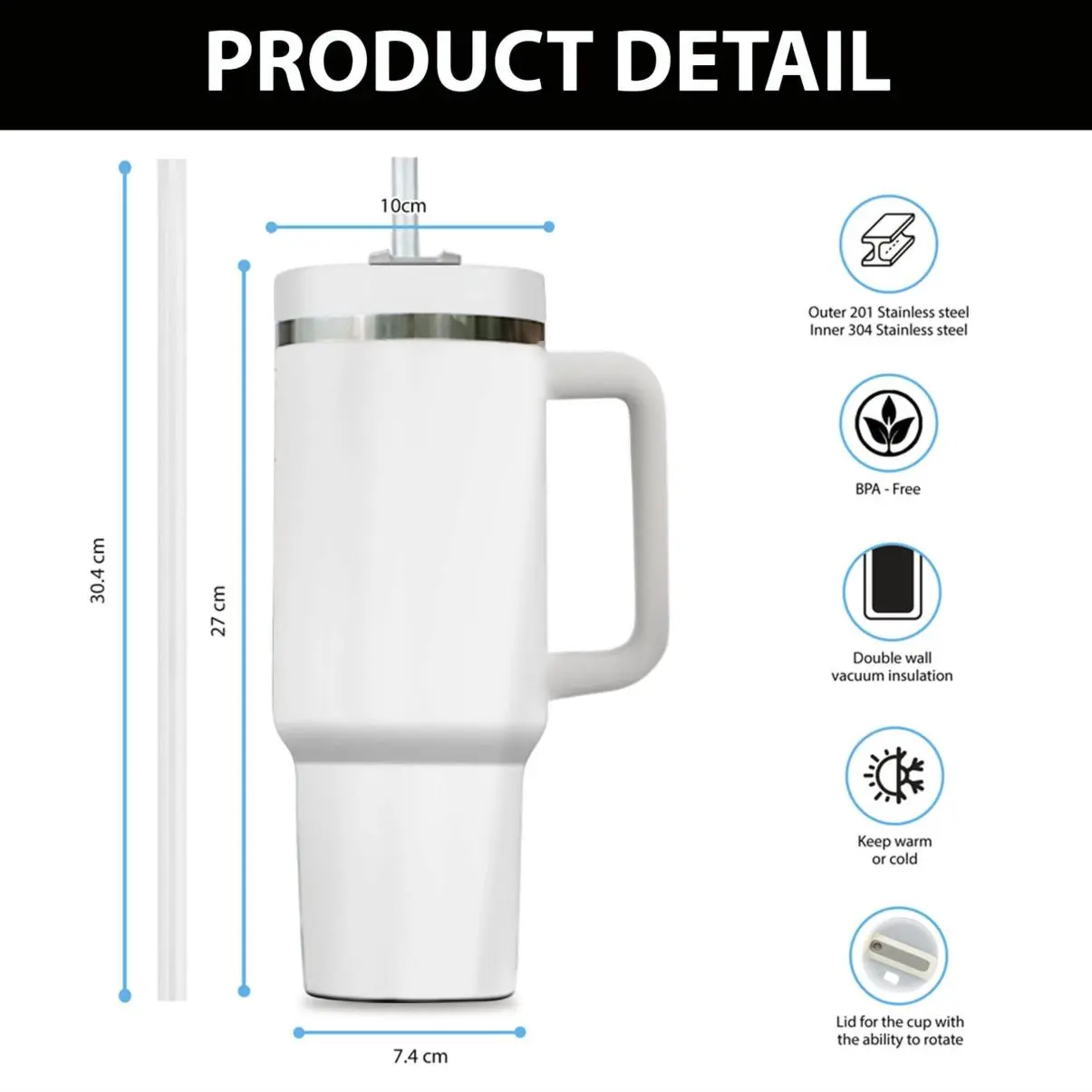 Simple Modern 40oz Trek Tumbler with Handle and Straw Lid - Vacuum Insulated Stainless Steel, Reusable, Cupholder Friendly