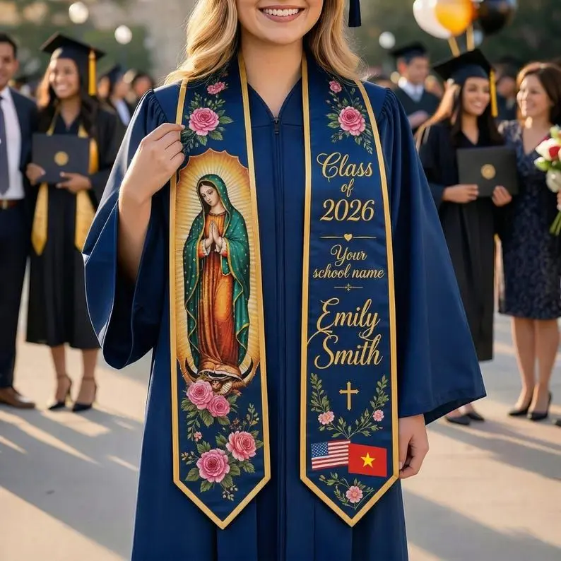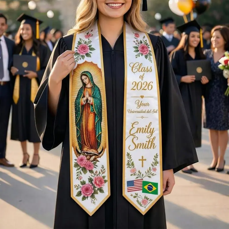 Personalized Virgen de Guadalupe Graduation Stole, Catholic Grad Sash Custom Name Class of 2026, Religious Gift, Latina Graduation Stole Graduation Stole