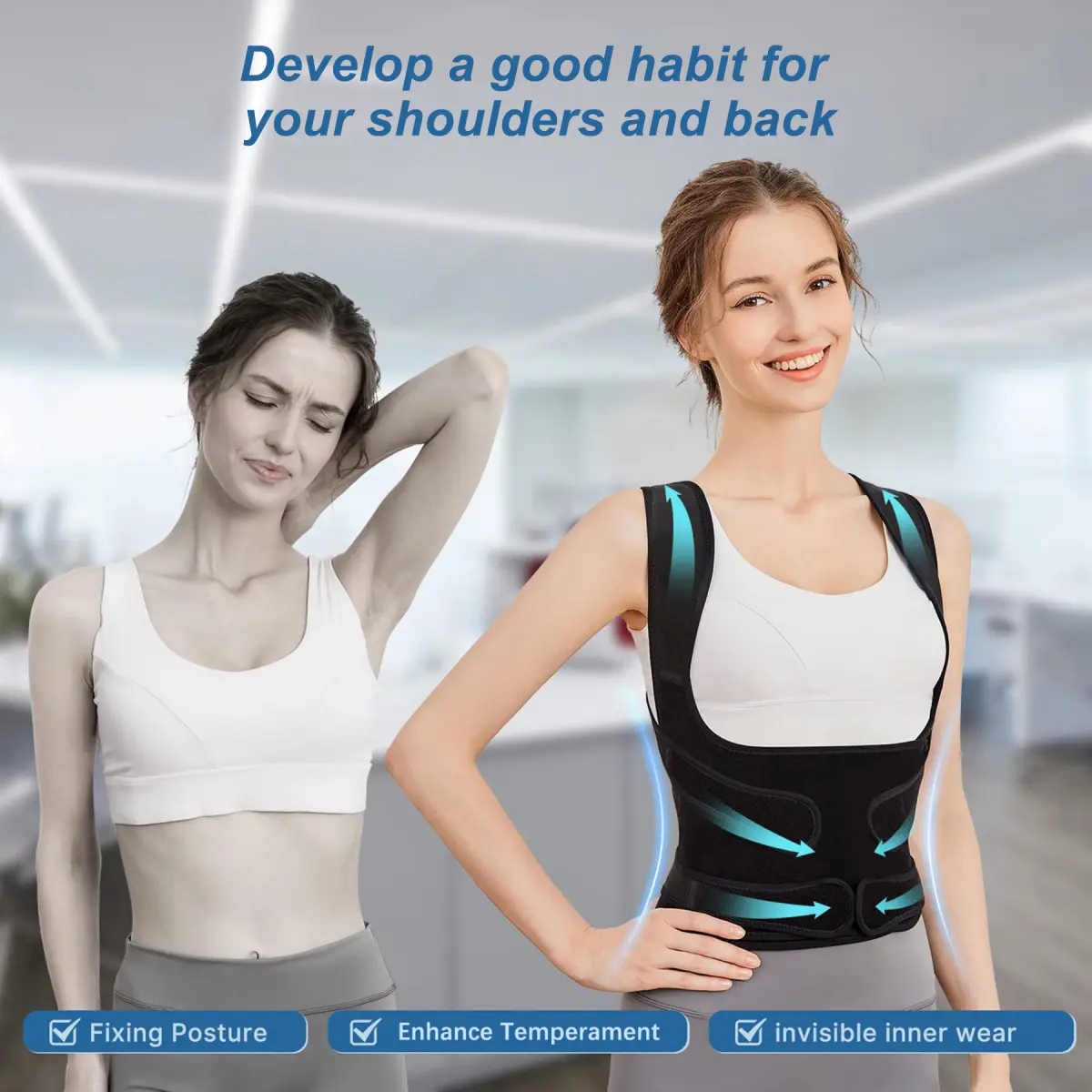 ·Adjustable shoulder posture brace: Suitable for different body types.