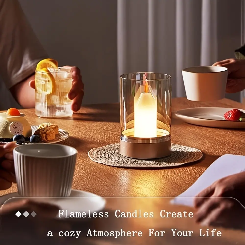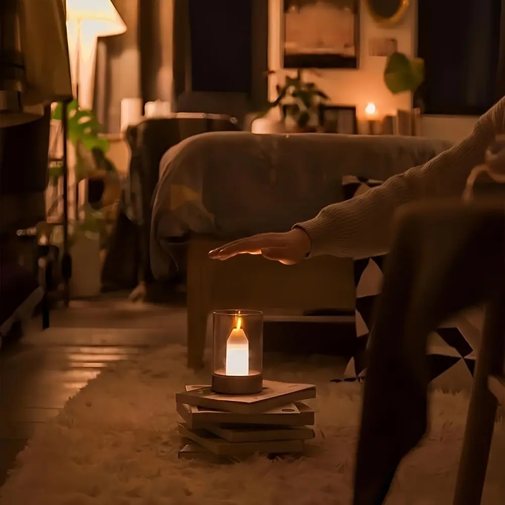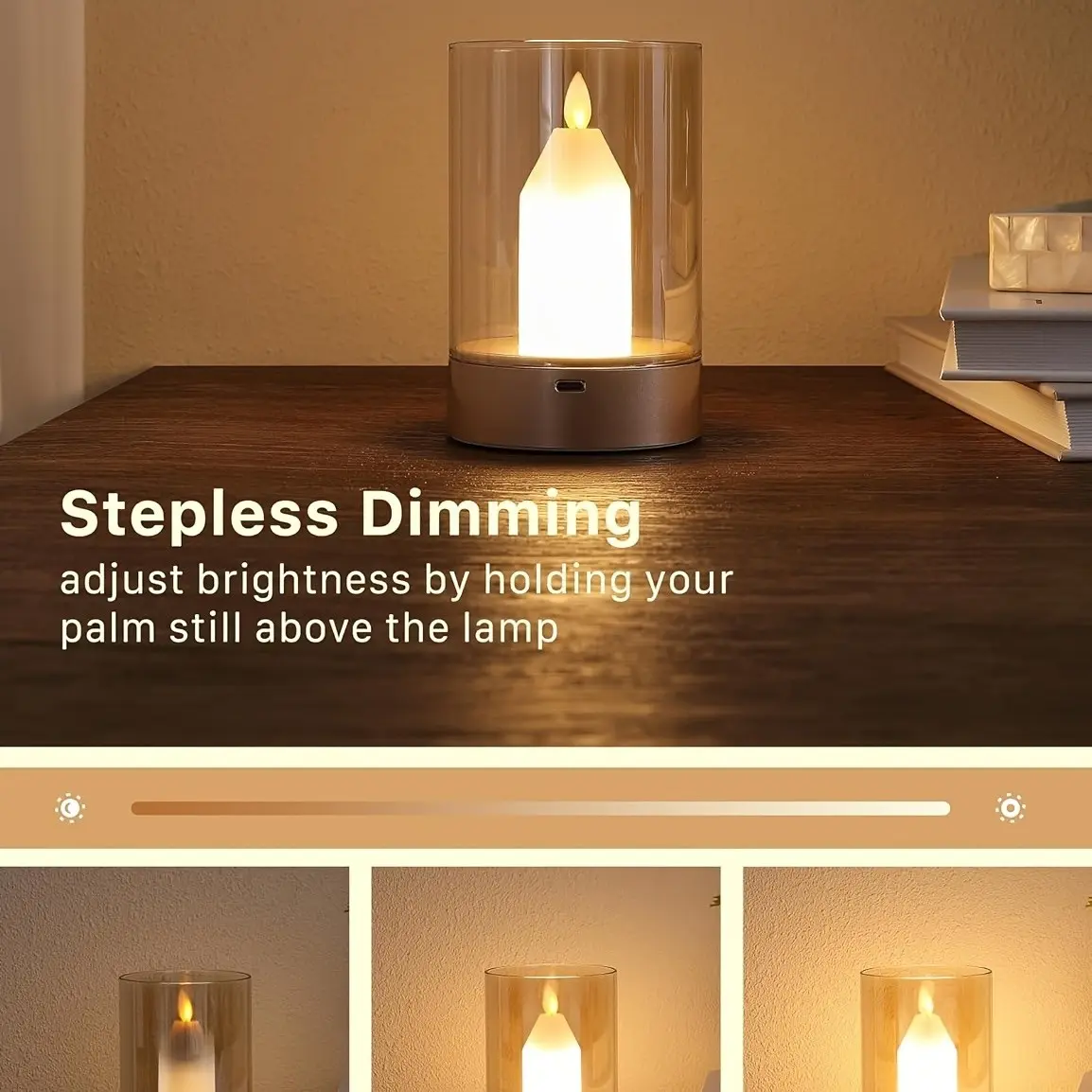 Small Candle Table Lamp Cordless Gesture Sensor Control Night Light Lamp Glass Flameless Candle Dimmable Table Candle Lantern Rechargeable Warm Light Lamp for Bedroom/Restaurant/Cafe