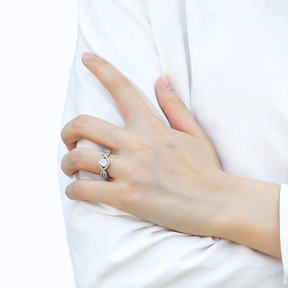 This set includes a love ring with intertwined ribbons, earrings, and a three-pronged zircon necklace. Crafted from s925 silver, it features a platinum color. The set weighs approximately 3.3g (ring), 2.6g (earrings), and 2.7g (necklace). It boasts 54 small stones, with the main stone being 6.0mm (0.8 carats) for the ring, and 7.0mm (1.2 carats) for the earrings and necklace.