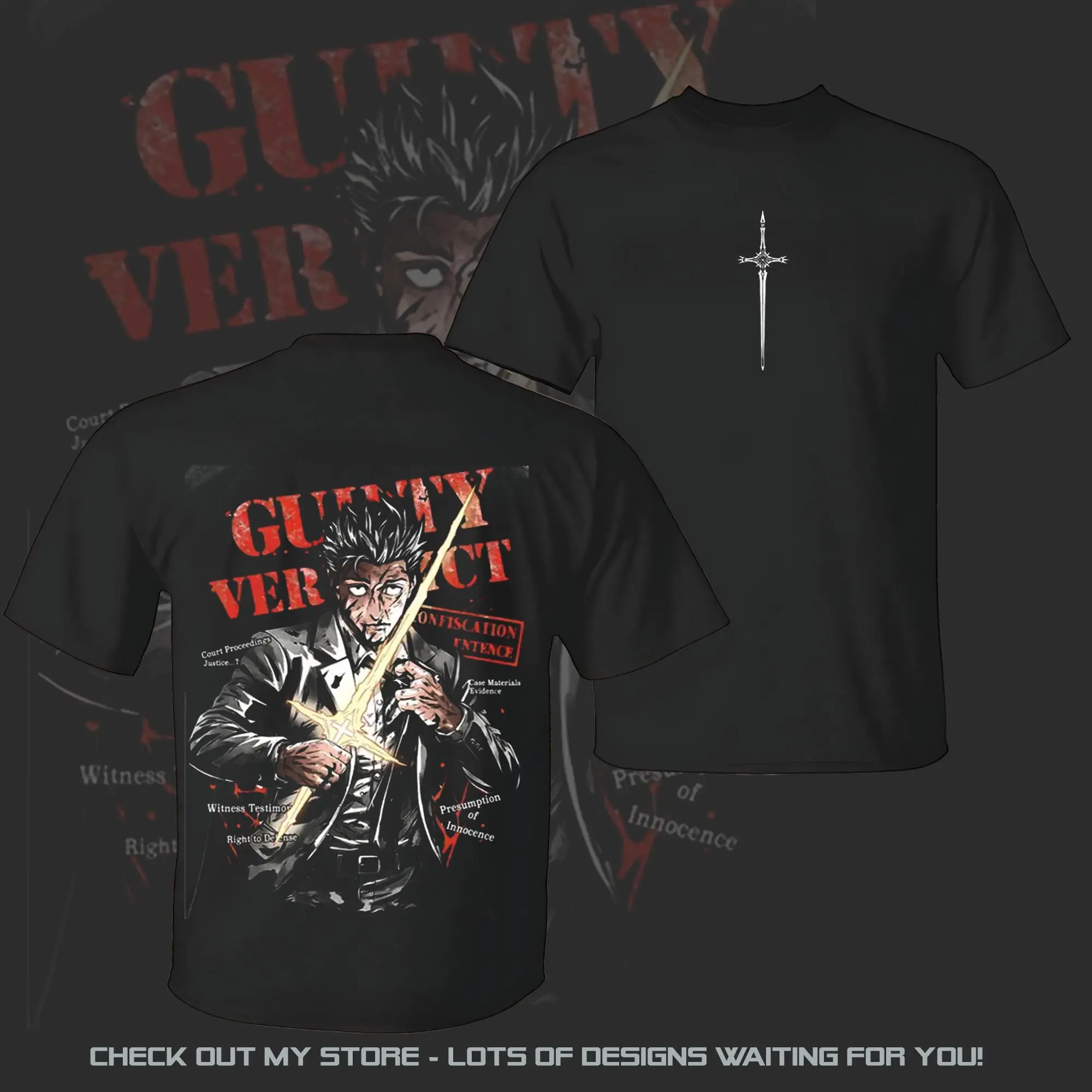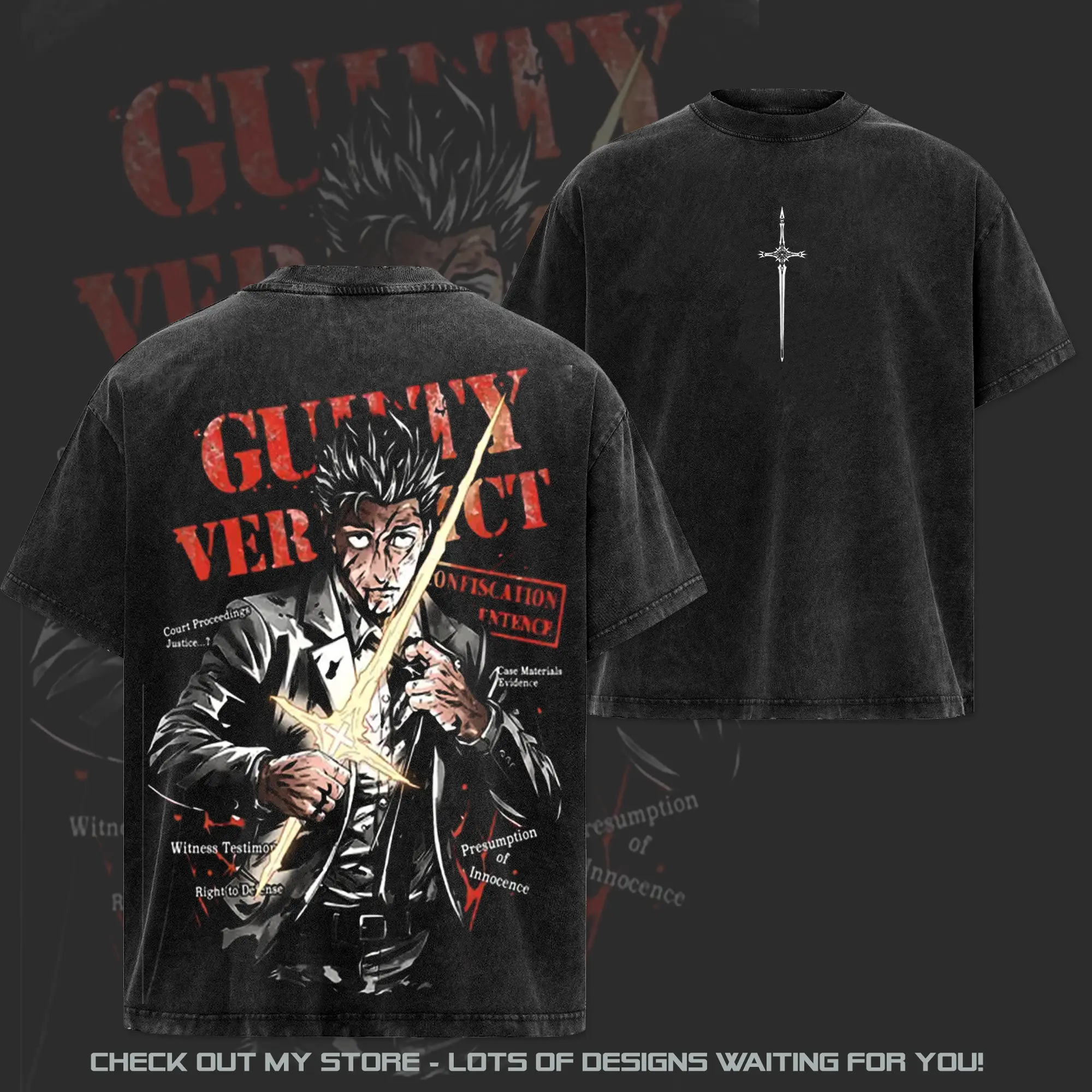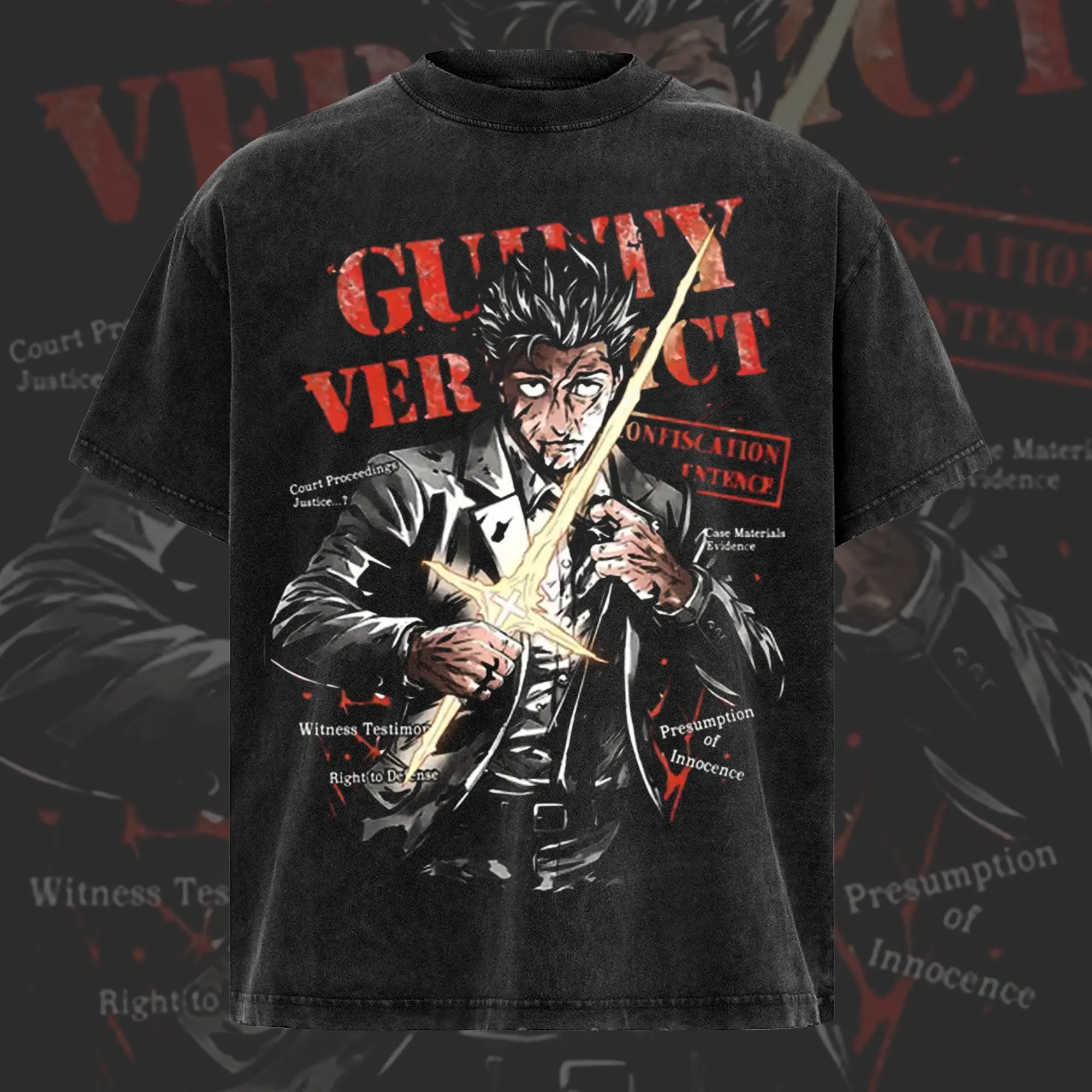 5. Hiromi Higuruma Jujutsu Kaisen Washed Tee - Hoodie | Vintage Washed Anime Graphic Tee - Executioner Sword Judgement Court Dark Aesthetic Oversized Streetwear Shirt for Anime Fans, Summer Outfits, Gift For Him Her