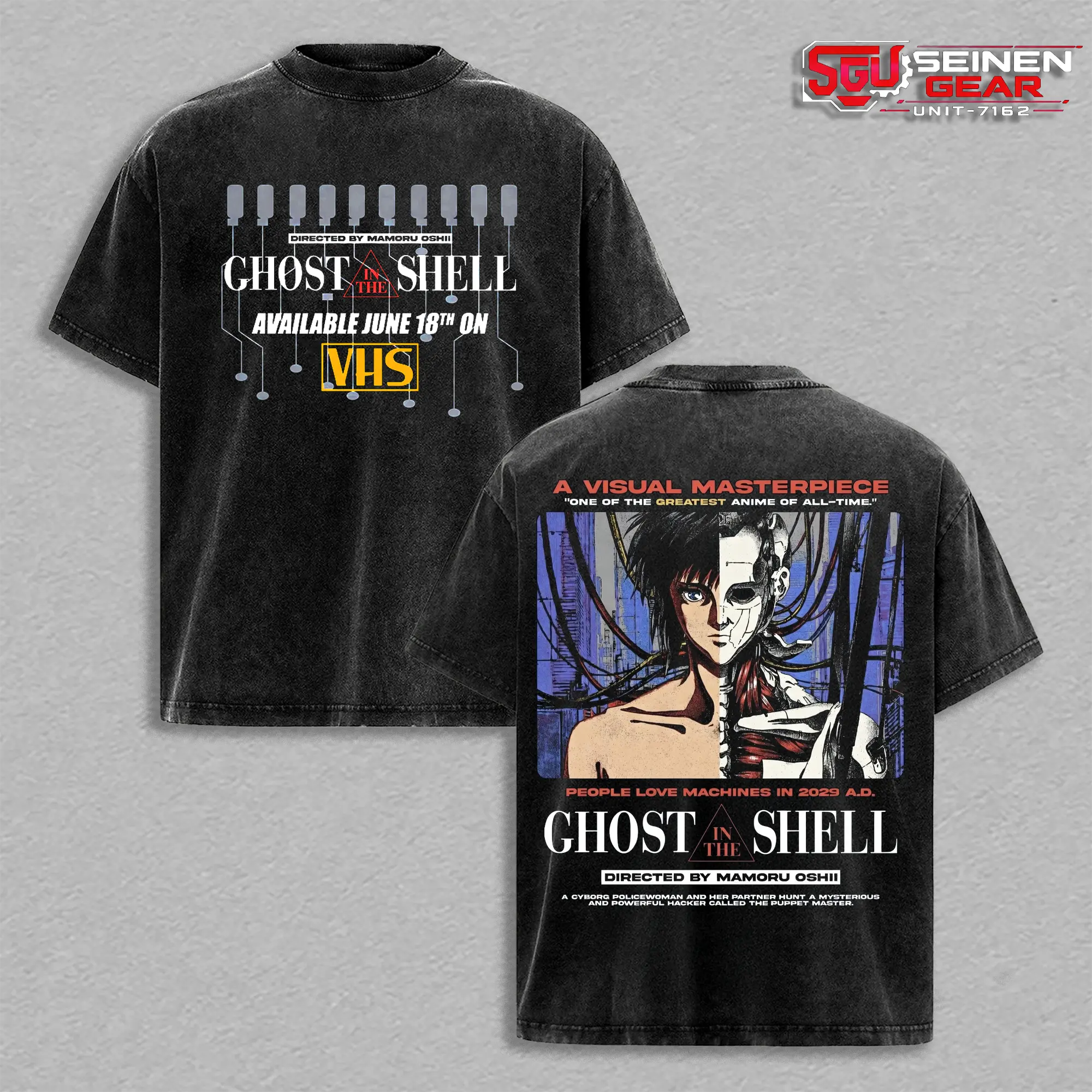 5. Major Motoko Kusanagi Cyber Unit T-Shirt – Vintage Washed Oversized Graphic Tee, Ghost in the Shell Anime Streetwear Casual, Heavy Cotton Unisex Top, Sci-Fi Tactical Style, Gift for Anime Fans