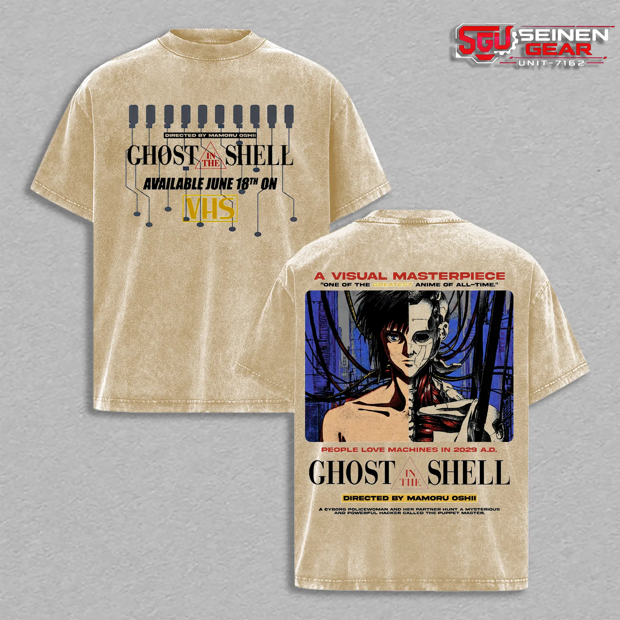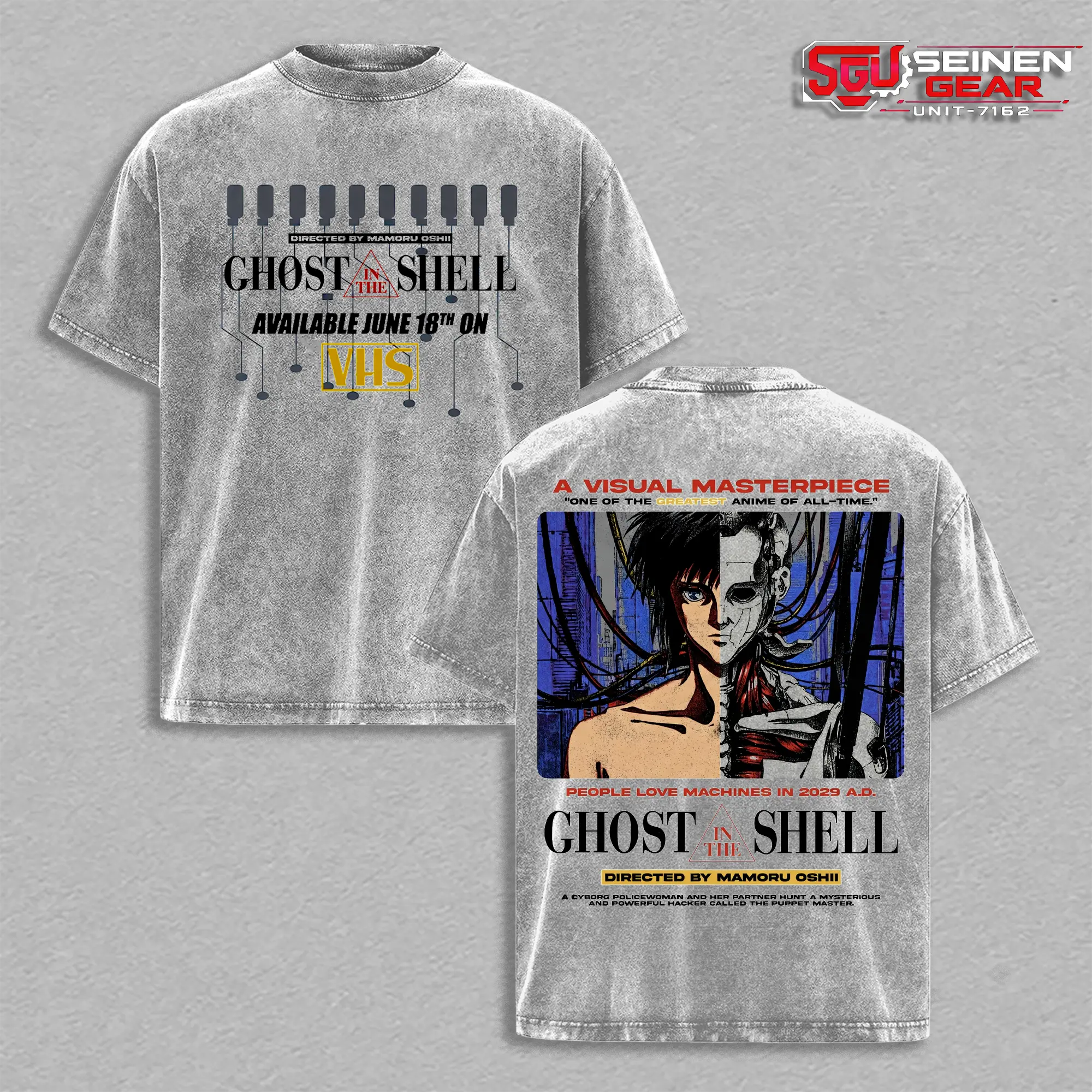 Major Motoko Kusanagi Cyber Unit T-Shirt – Vintage Washed Oversized Graphic Tee, Ghost in the Shell Anime Streetwear Casual, Heavy Cotton Unisex Top, Sci-Fi Tactical Style, Gift for Anime Fans