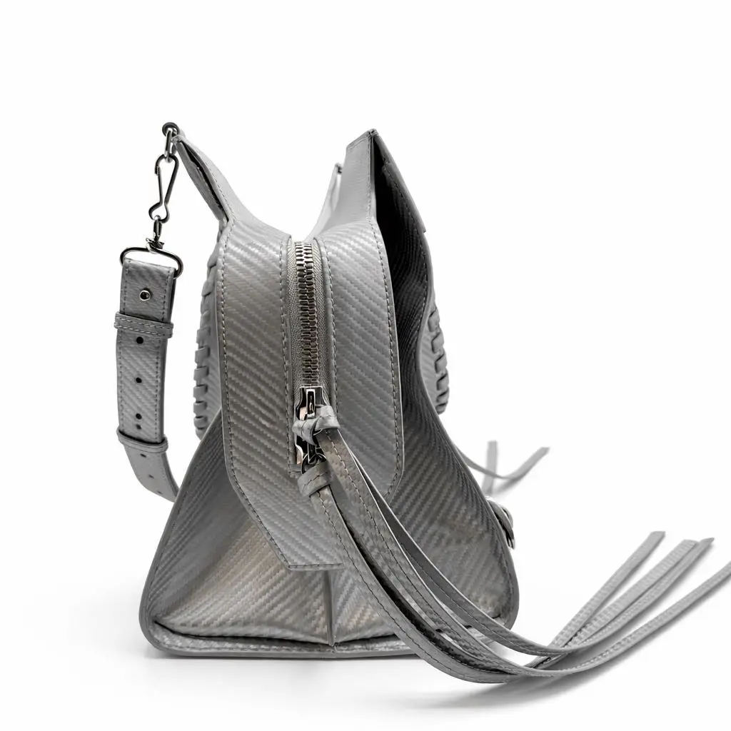 This handbag is versatile, fitting seamlessly into various styles. Whether for work or casual outings, it remains a chic accessory. The silver carbon fiber adds a touch of sophistication, making it a must-have for fashion-forward individuals.