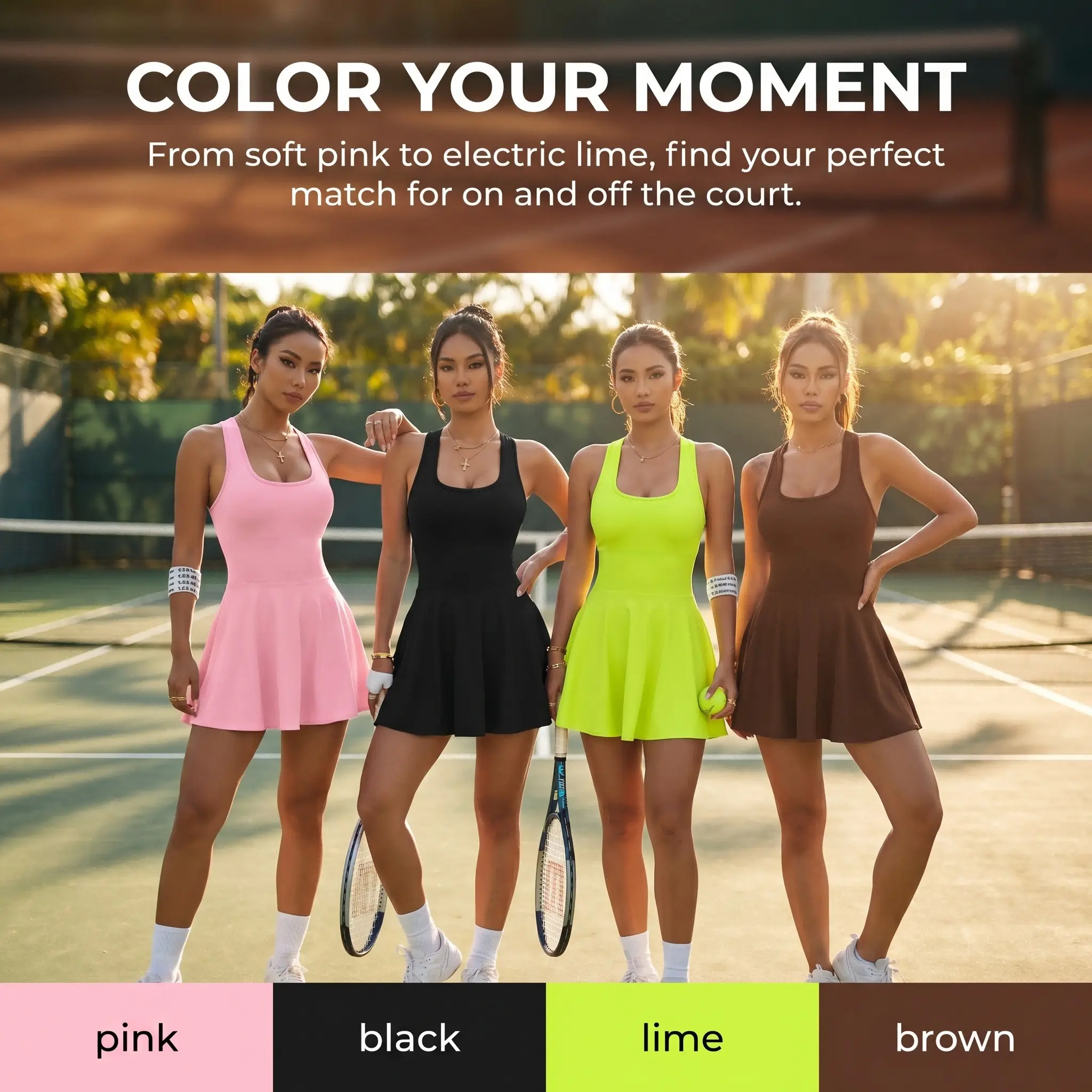 ·Flattering Racerback & Slim FitThis women’s one-piece tennis dress features a trendy racerback and seamless slim fit, hugging your figure beautifully while delivering full freedom of movement on and off the court.
