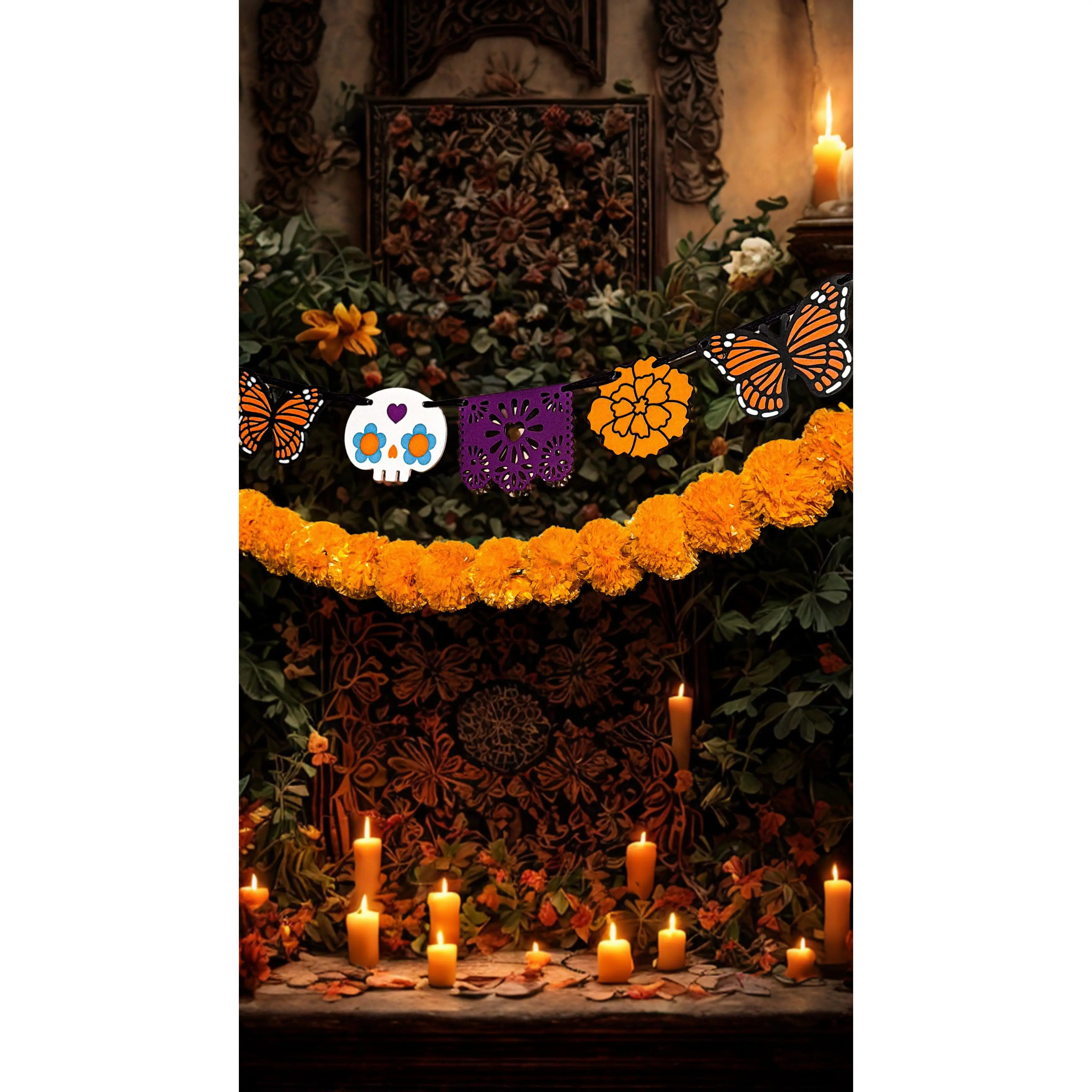 Bring the spirit of Día de los Muertos into your home, altar, or celebration with these handcrafted garlands, strung on soft silk ribbon for an elegant touch. ✨