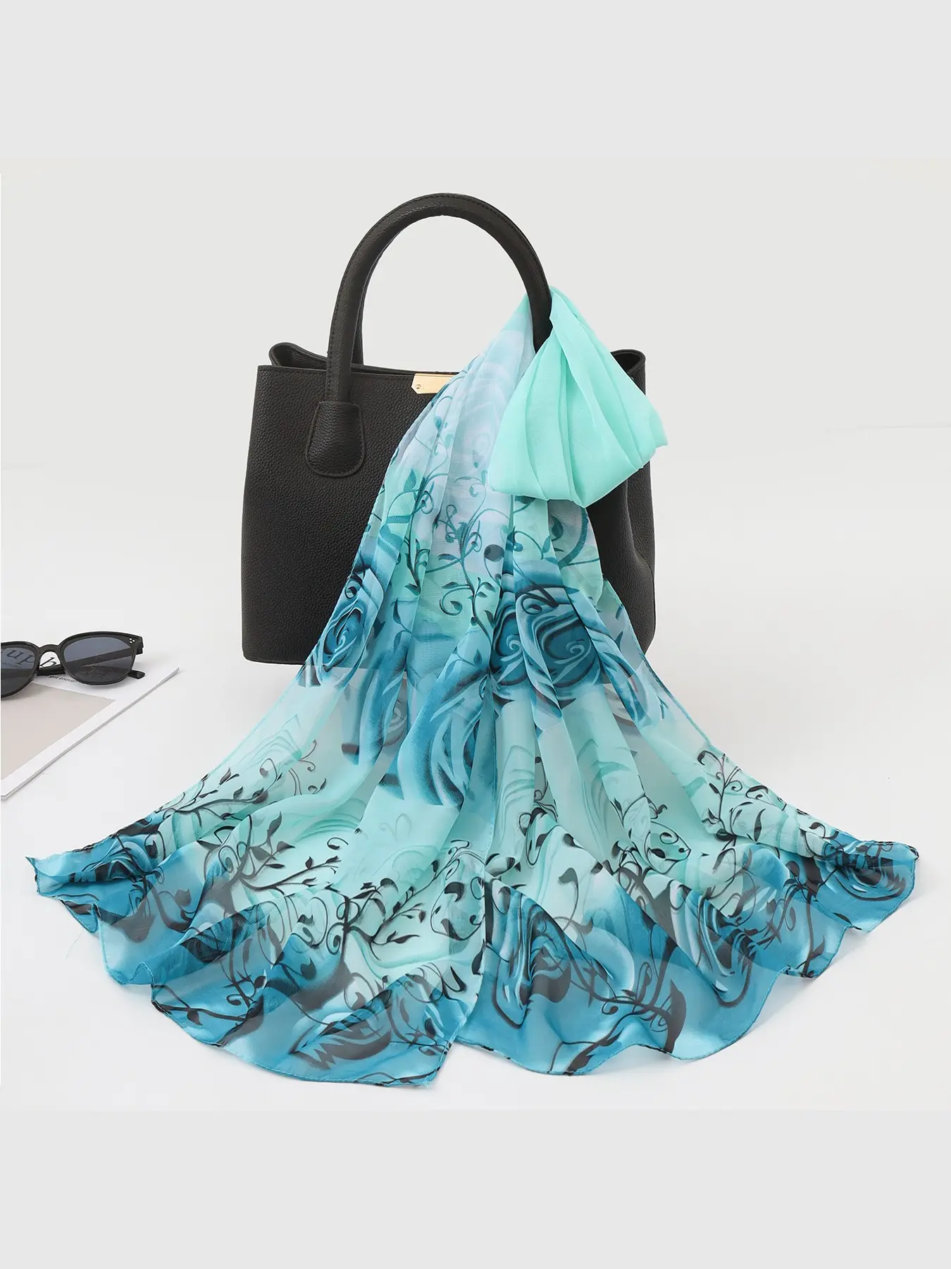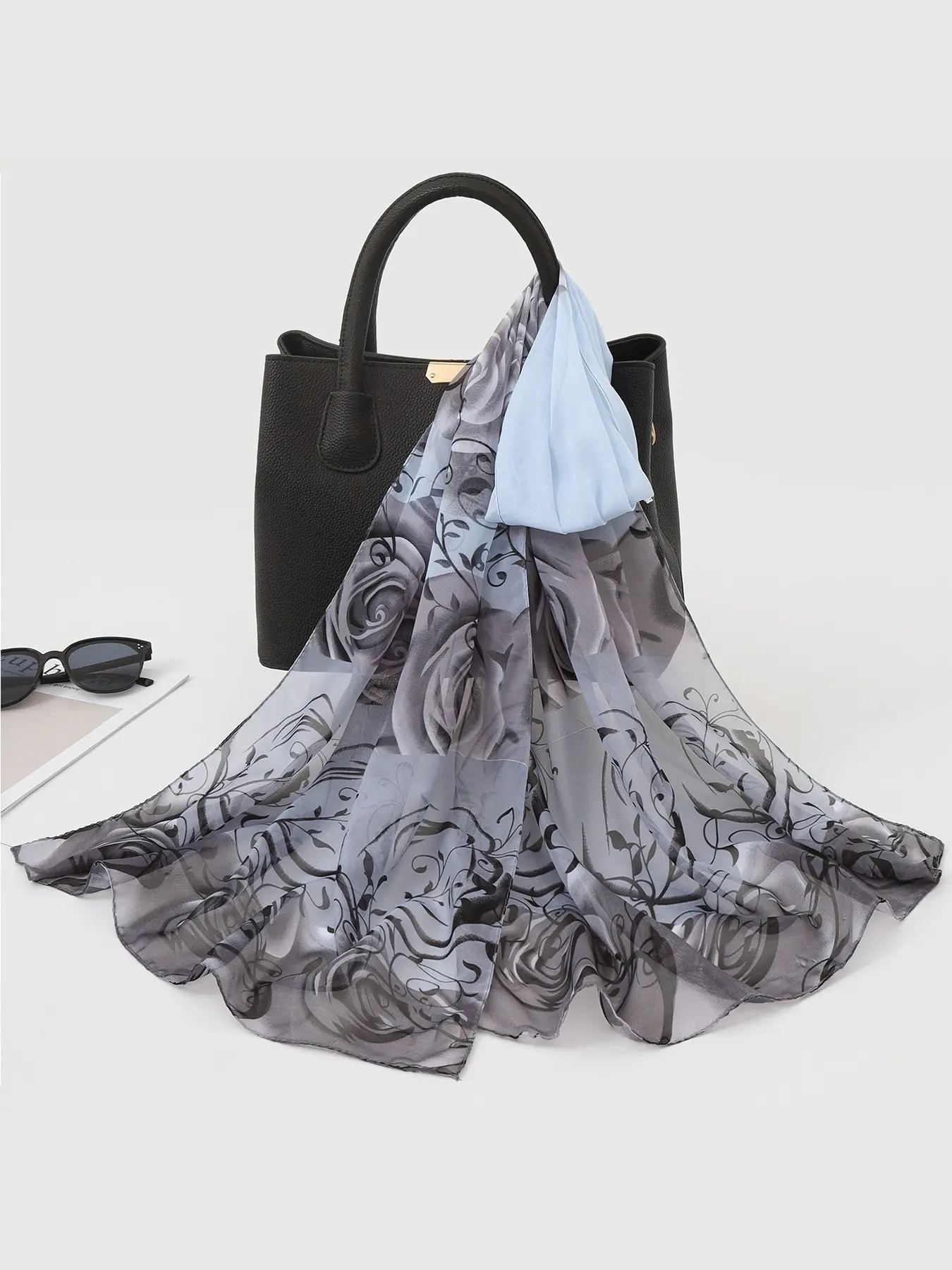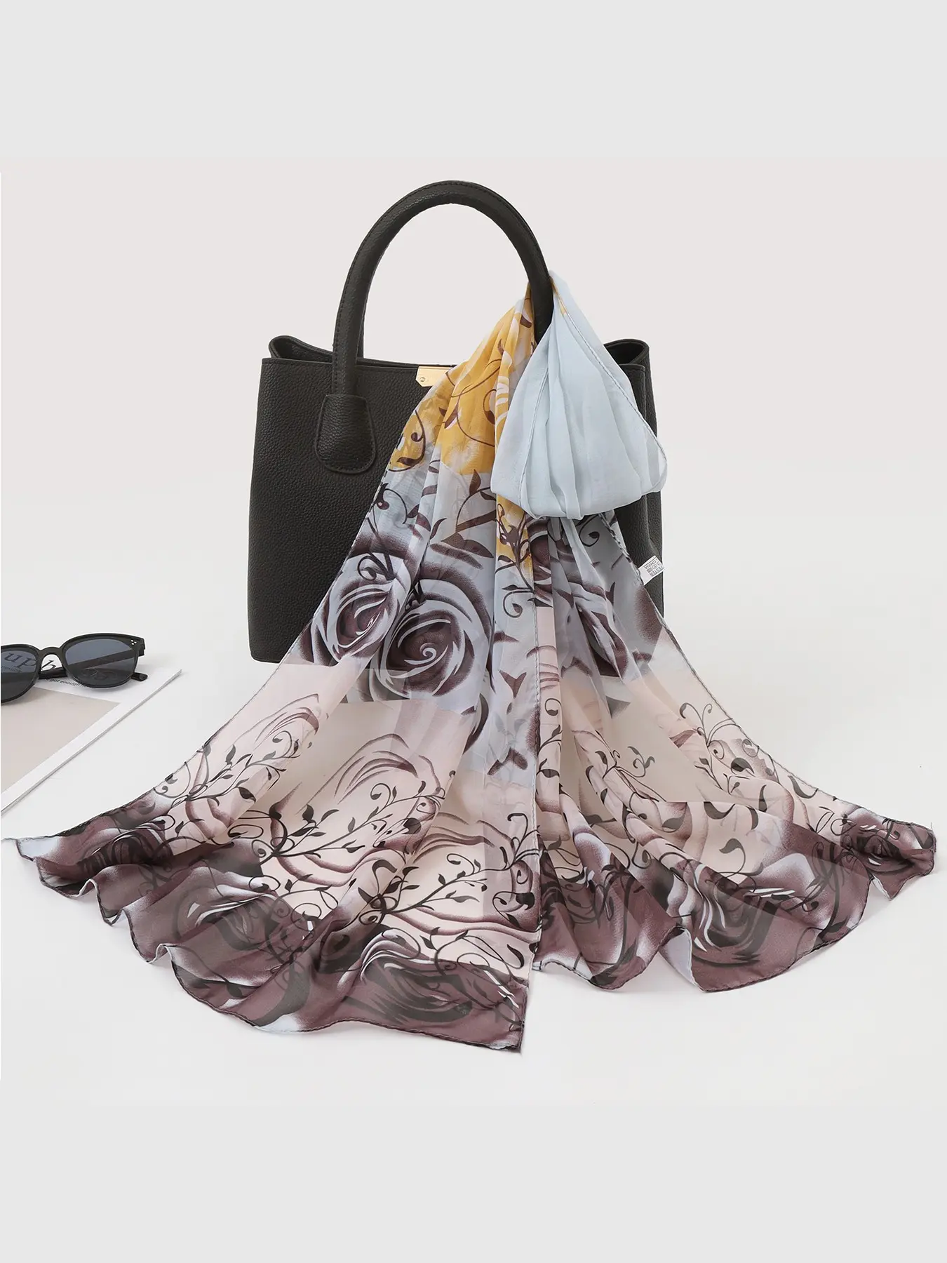 Elegant Floral Silk Scarf, Casual Loose-Fit Chiffon Print Wrap, Spring Summer Sun Protection, Fashionable Holiday Gift, Women's Stylish Shawl