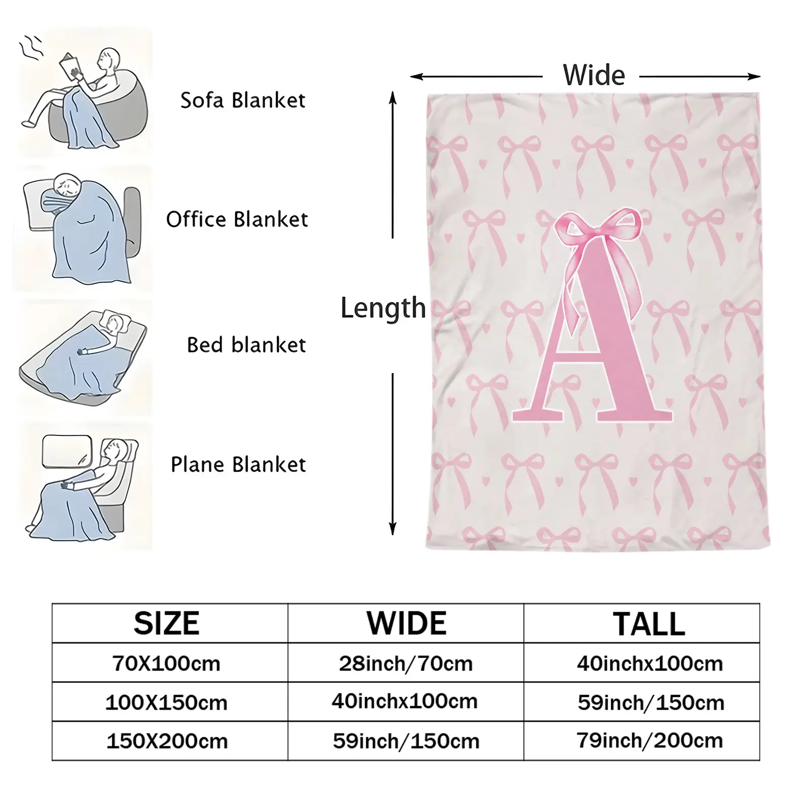 5. 1Pc Bow Letter Flannel Blanket, Skin-Friendly Soft Lightweight And Comfortable, Versatile Multi-Use Easy to Store, Throw Blanket for Girls' Bedroom, Dorm And Home Nap
