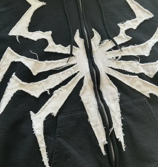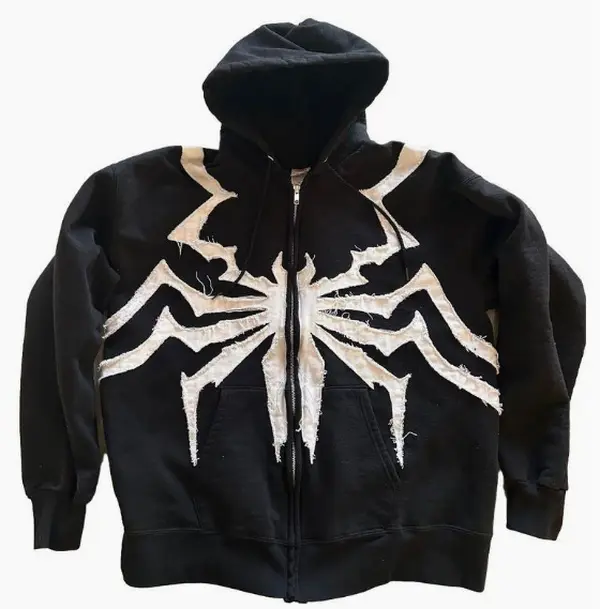 sharp white spider graphic on the back delivers edgy, anti-hero energy, perfect for Y2K and alt-style fits. Made from ultra-soft fleece with a relaxed, oversized fit, it’s cozy for all-day wear and ideal for layering. Whether you’re hitting the city or festivals, this hoodie stands out.