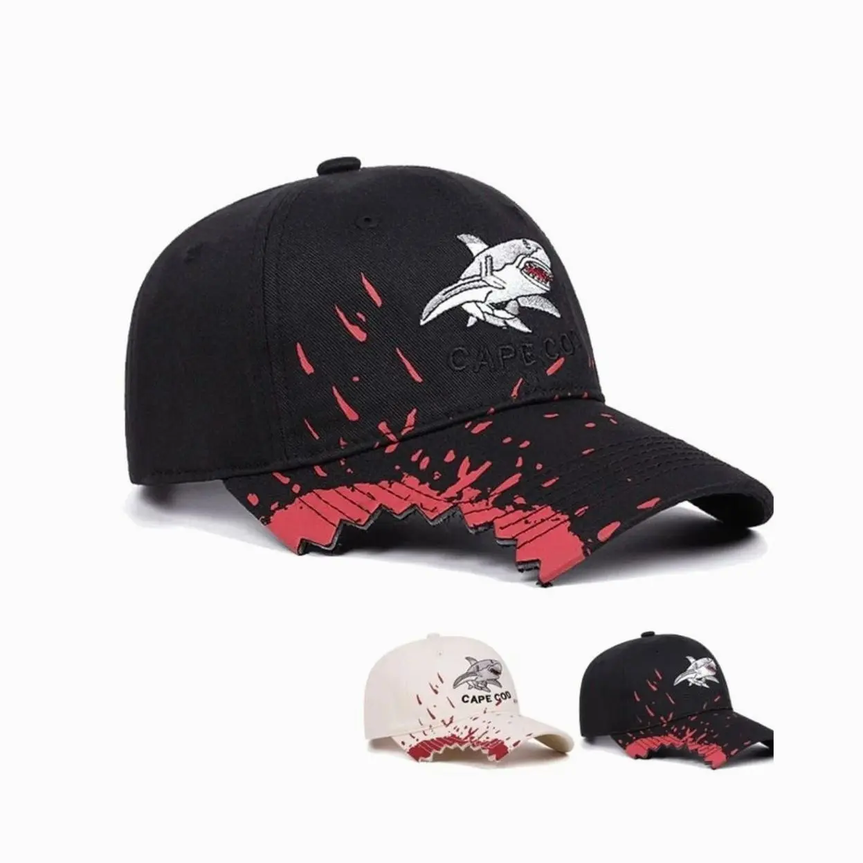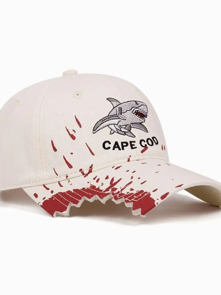 Shark Embroidered Creative Edge Baseball Cap for Men and Women, Trendy Streetwear Fashion Hat, Casual Outfits Cap