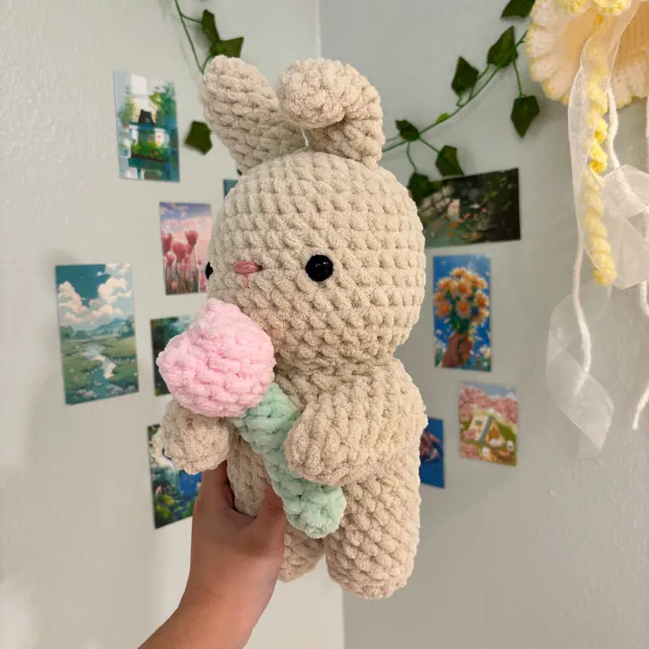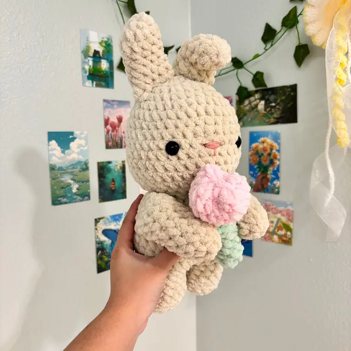 Crochet Bunny Holding Tulip