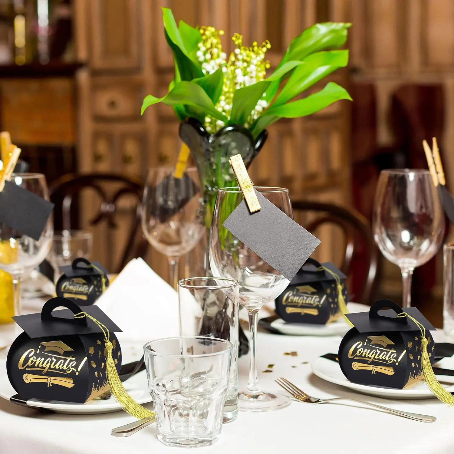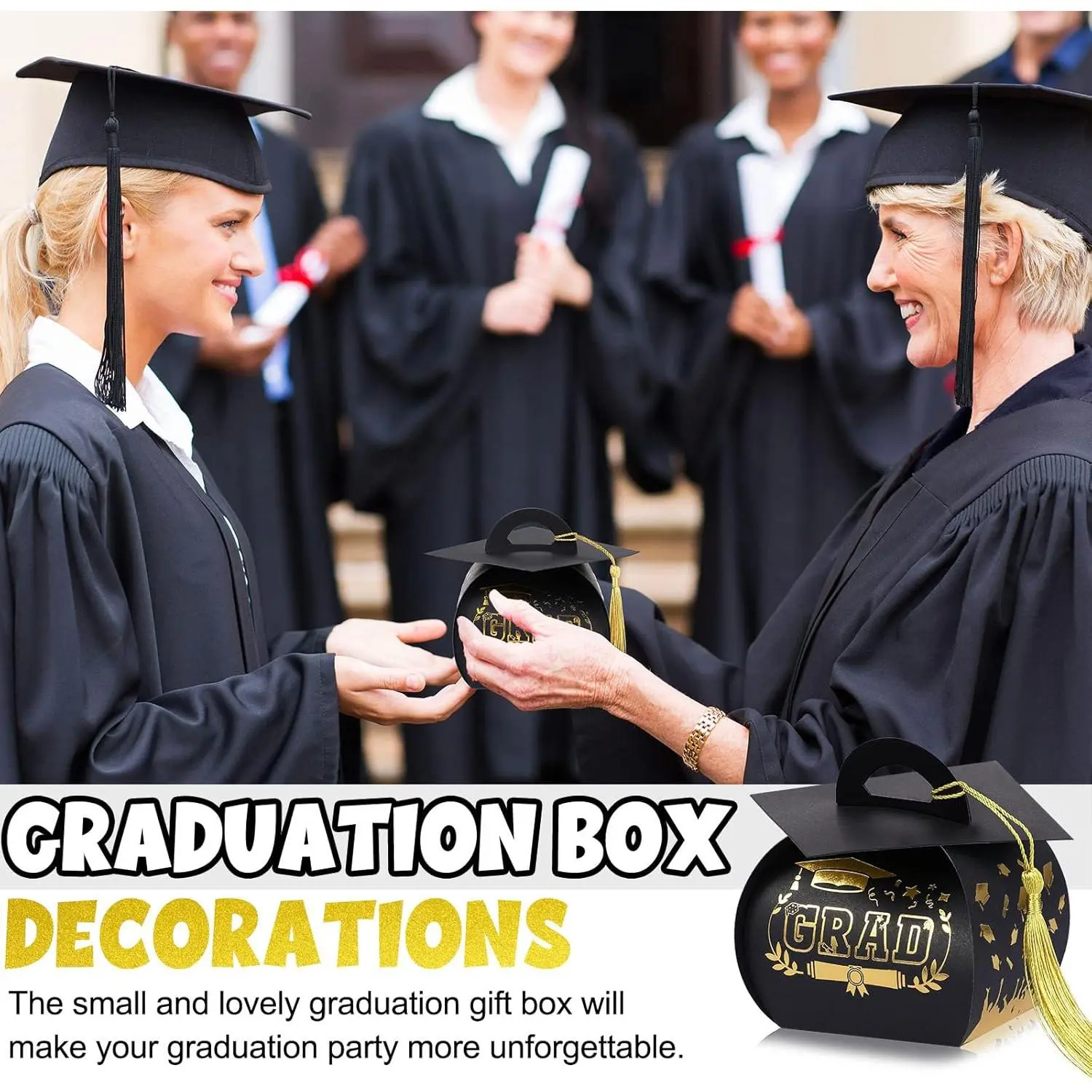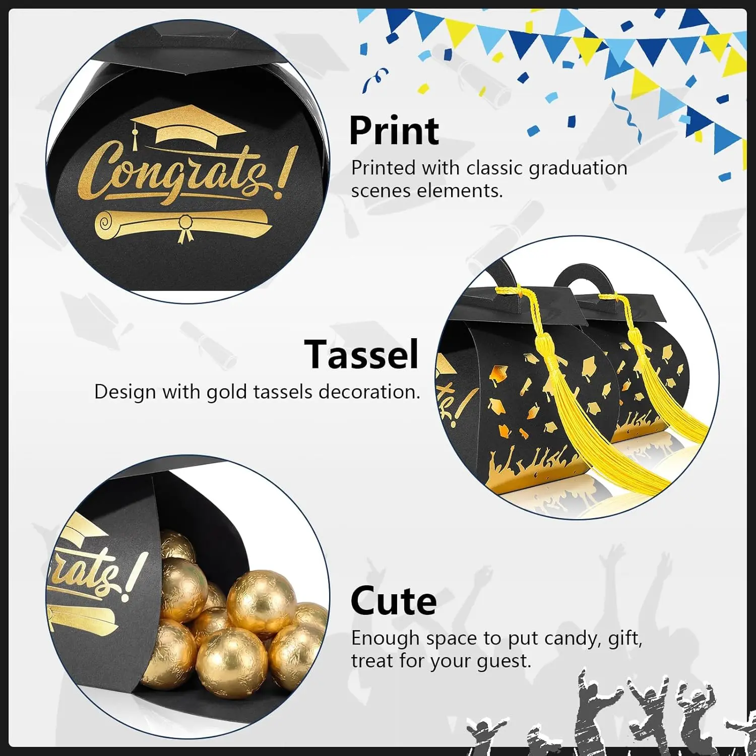 30 Pcs Graduation Cap Gift Box Graduation Party Favors Candy Boxes Treat Box with Tassel Table Centerpieces Class of 2026 Grad Decorations(Black, Gold)