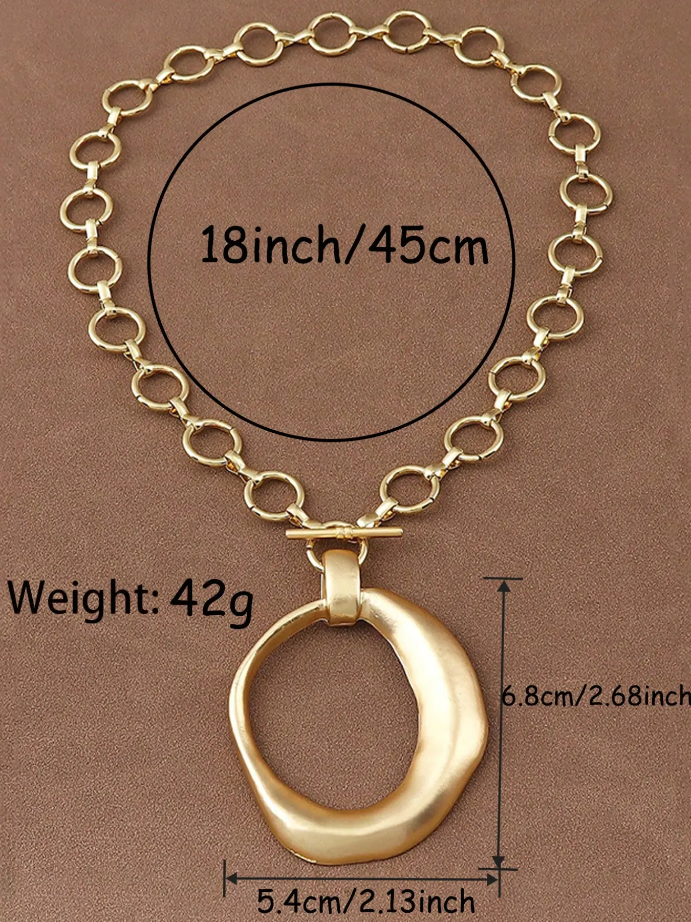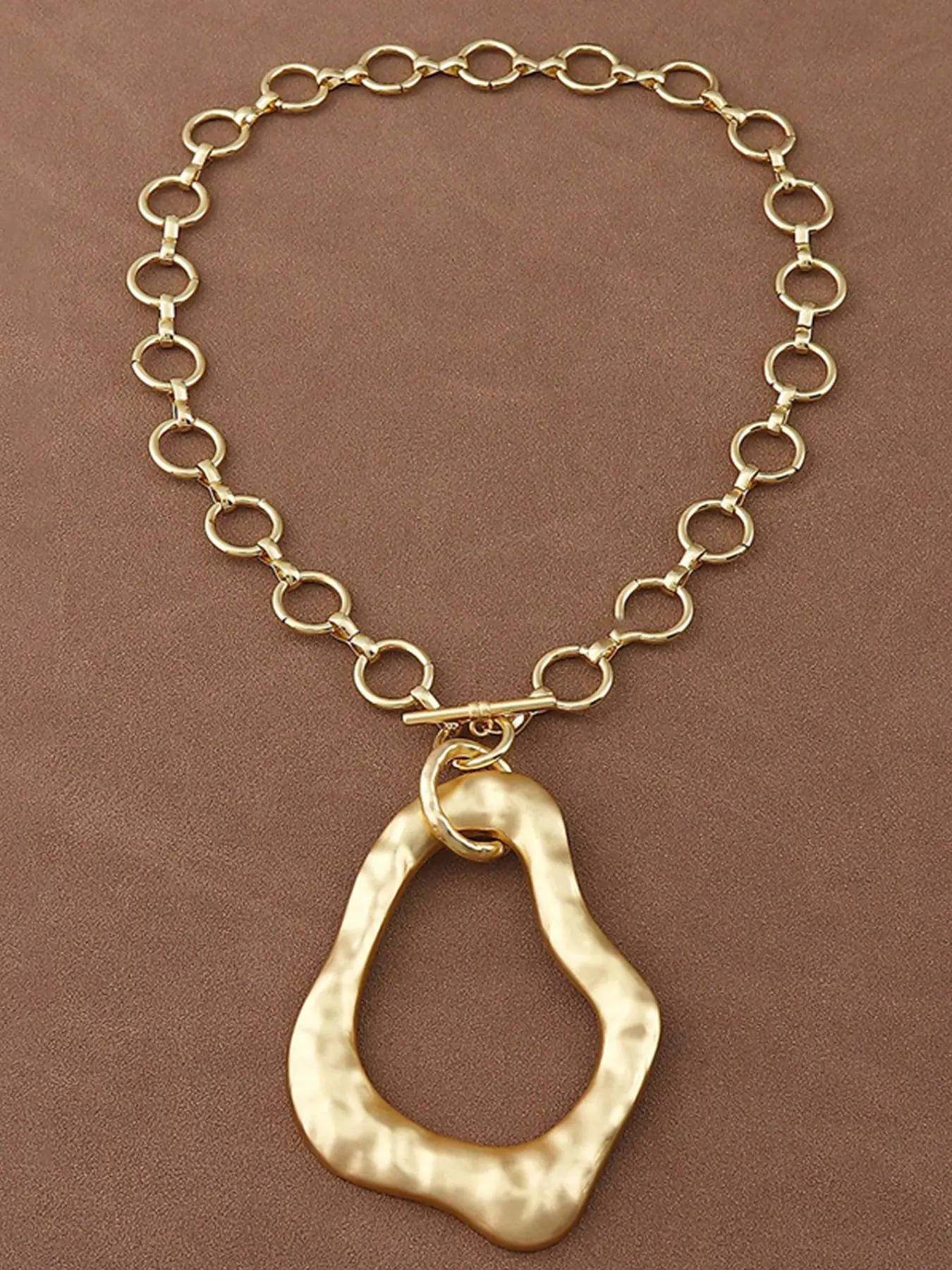 1pc Boho Fashionable Matte Gold Color Hollow Open Irregular Large Pendant Chunky Chain Statement Necklace Suitable For Women's Daily Wear 18"+2" Extend Chain