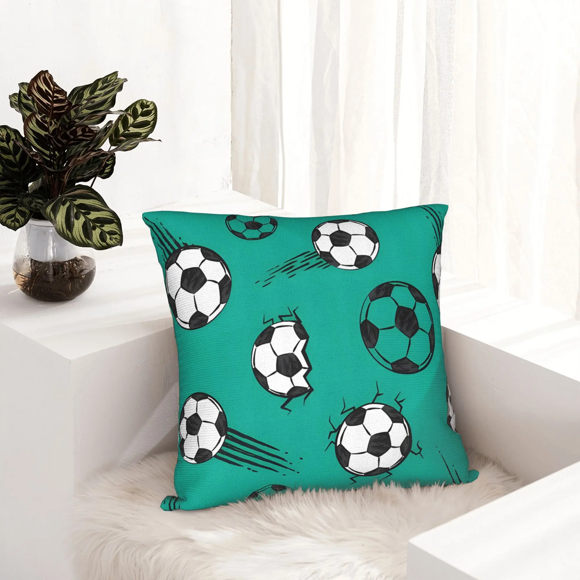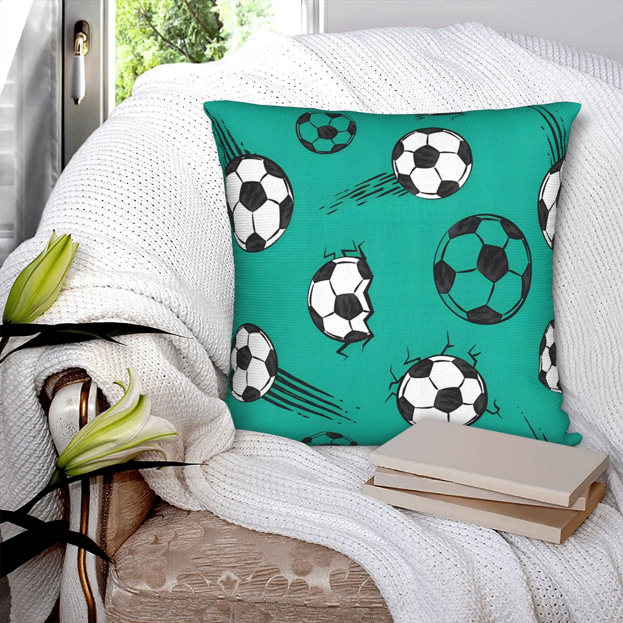 Football pillowcase, sofa cushion cover, double-sided printed decorative pillowcase, machine washable with zipper closure