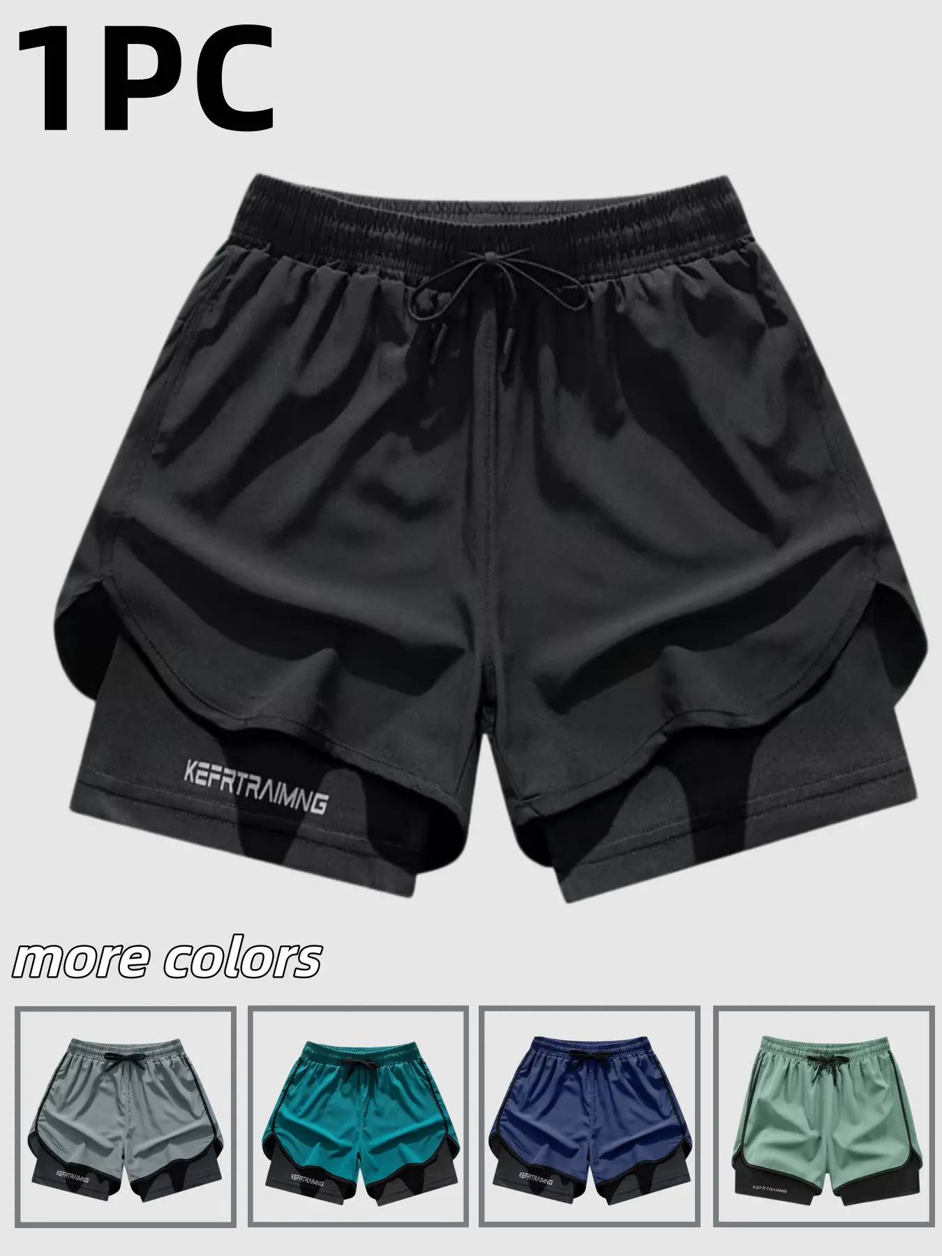 This is a line.Men's Double-Layer Athletic ShortsDesigned specifically for running, fitness, and other sports activities.