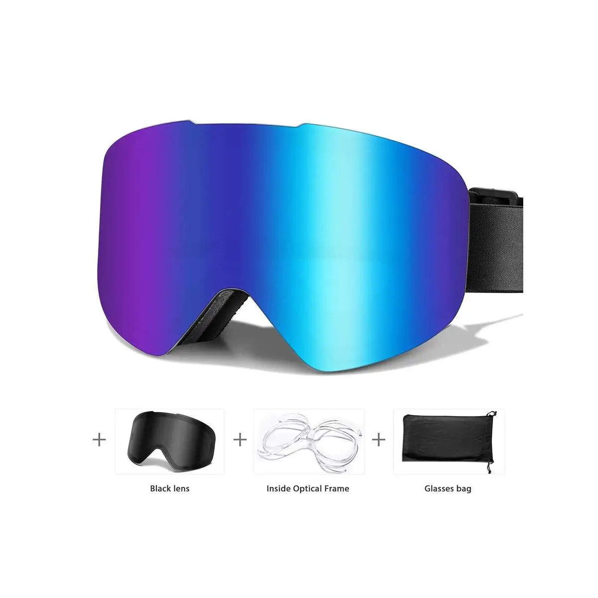 Ski Goggles with Uv400 Protection+ Replacement Lenses, Anti-Fog, Interchangeable Magnetic Lenses, OTG-Friendly, Frameless Design, Snowboard Goggles for Men Women