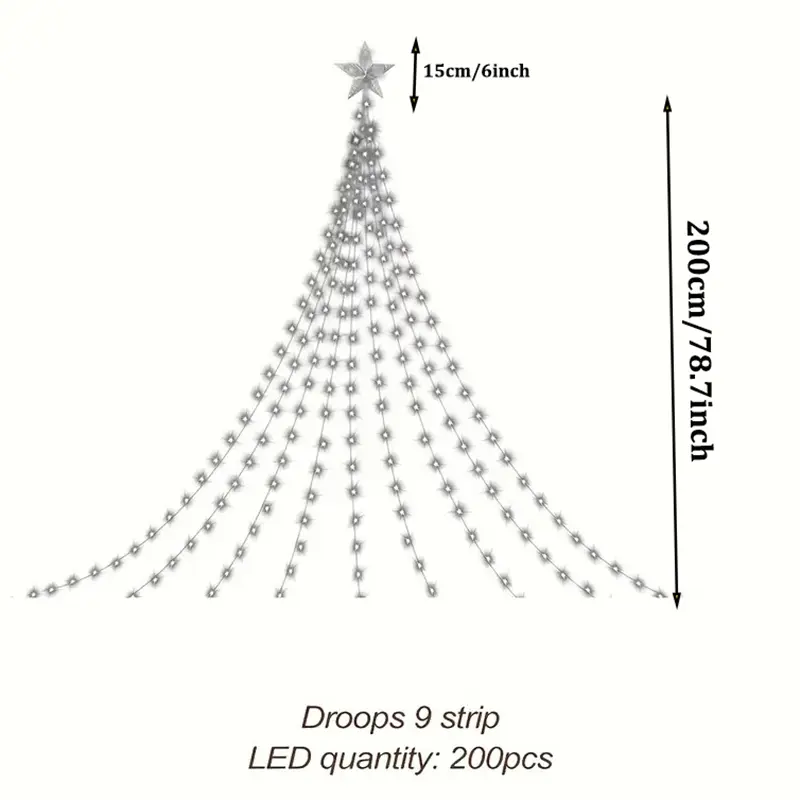 [200LED Lights]: Equipped with 200 LEDs, this product offers bright and vibrant illumination for festive occasions.