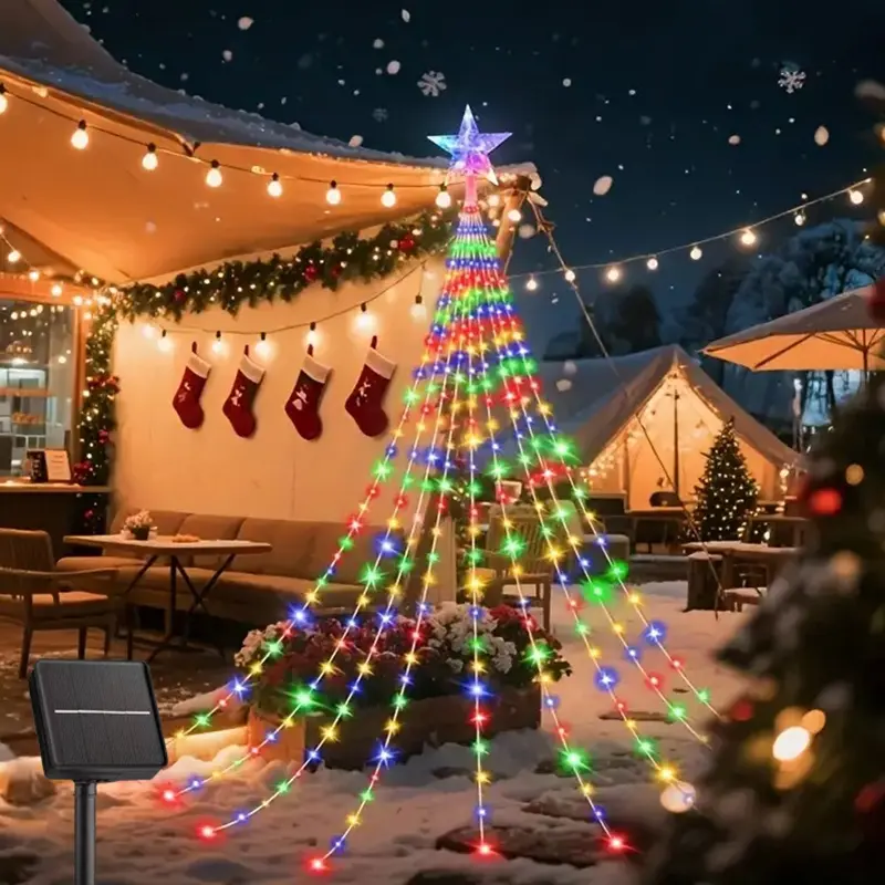 Solar Christmas Waterfall Lights, 200 LED Outdoor Waterproof String Lights, 8 Modes Fairy Lights for Holiday Decorations, Led Star Light