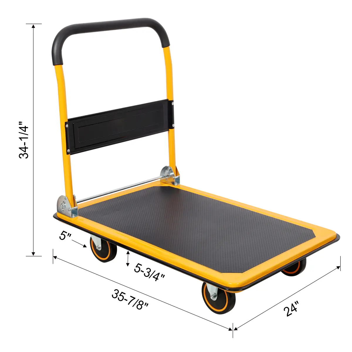 Padded handle for comfortable grip; textured platform prevents cargo slipping.Built-in edge bumper protects walls and furniture.