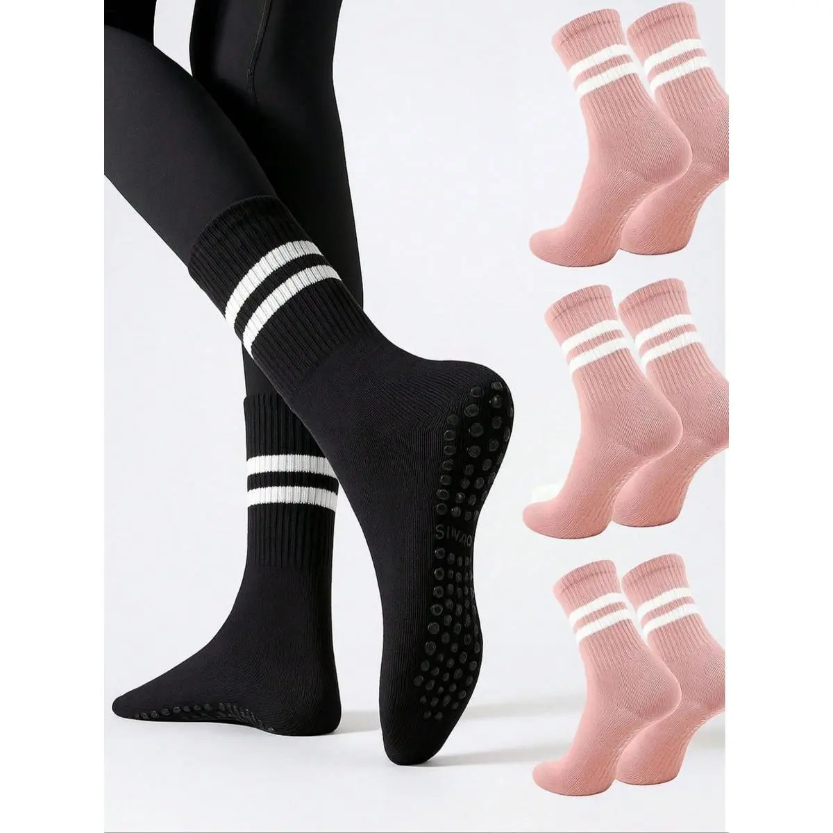 Women's Anti-Slip Socks for Yoga Pilates Gymnastics, Breathable Sweat-Absorbing Mid-Calf Socks, Grip Sports Socks, Sporty Plain Design, All Seasons Wear