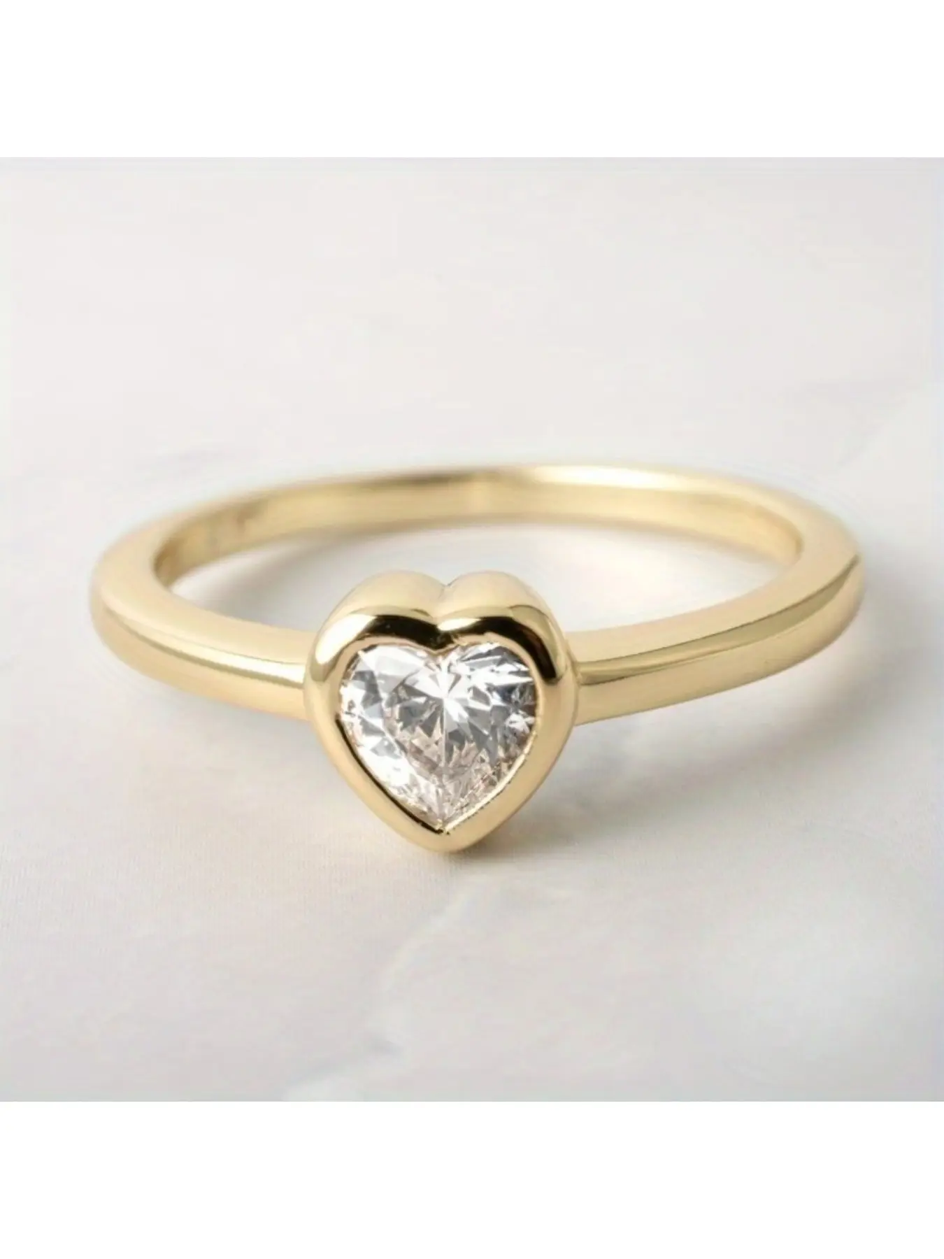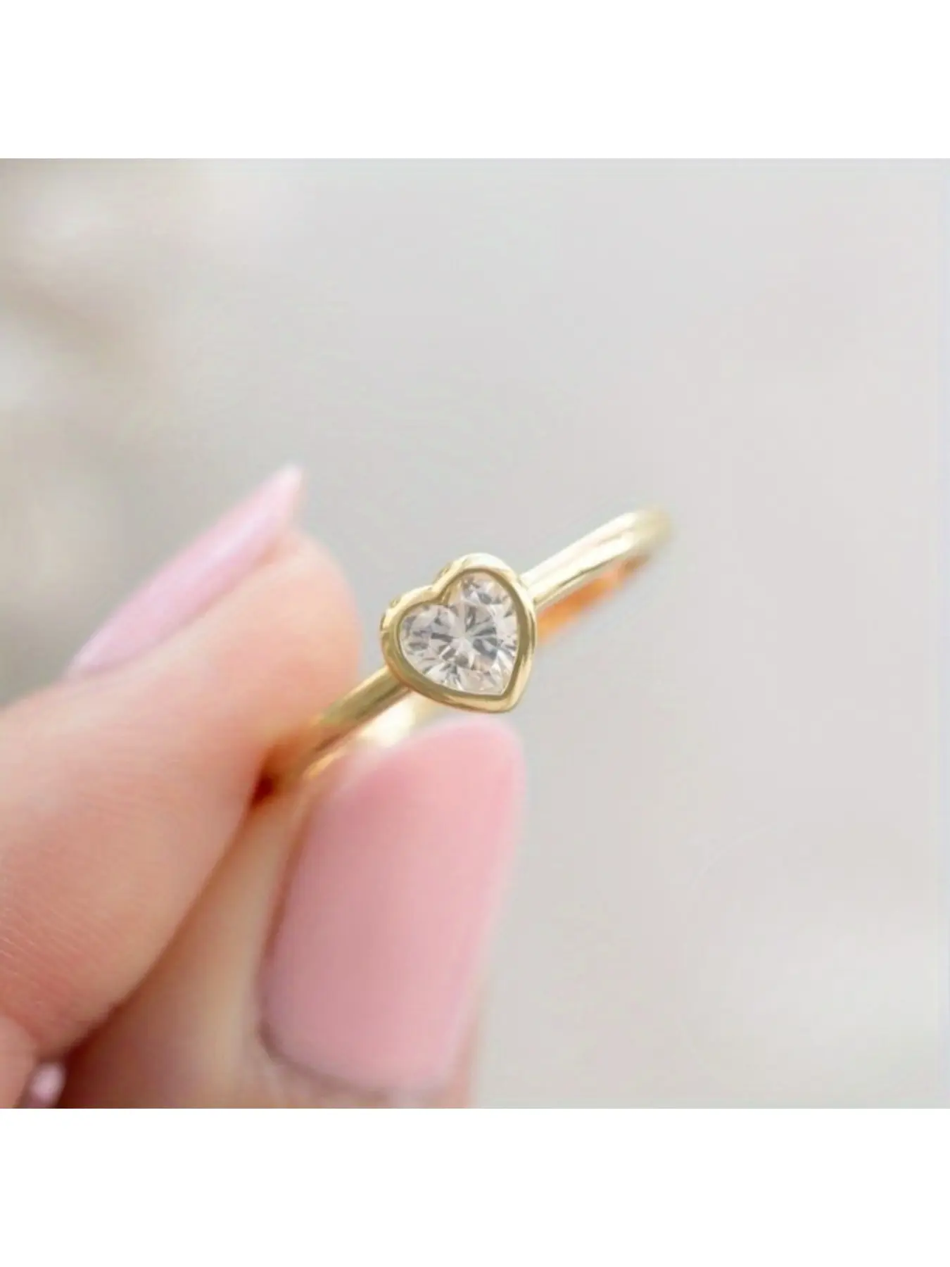 Fashionable and minimalist heart-shaped cubic zirconia women's ring suitable for parties, banquets, engagements, ladies' jewelry gifts
