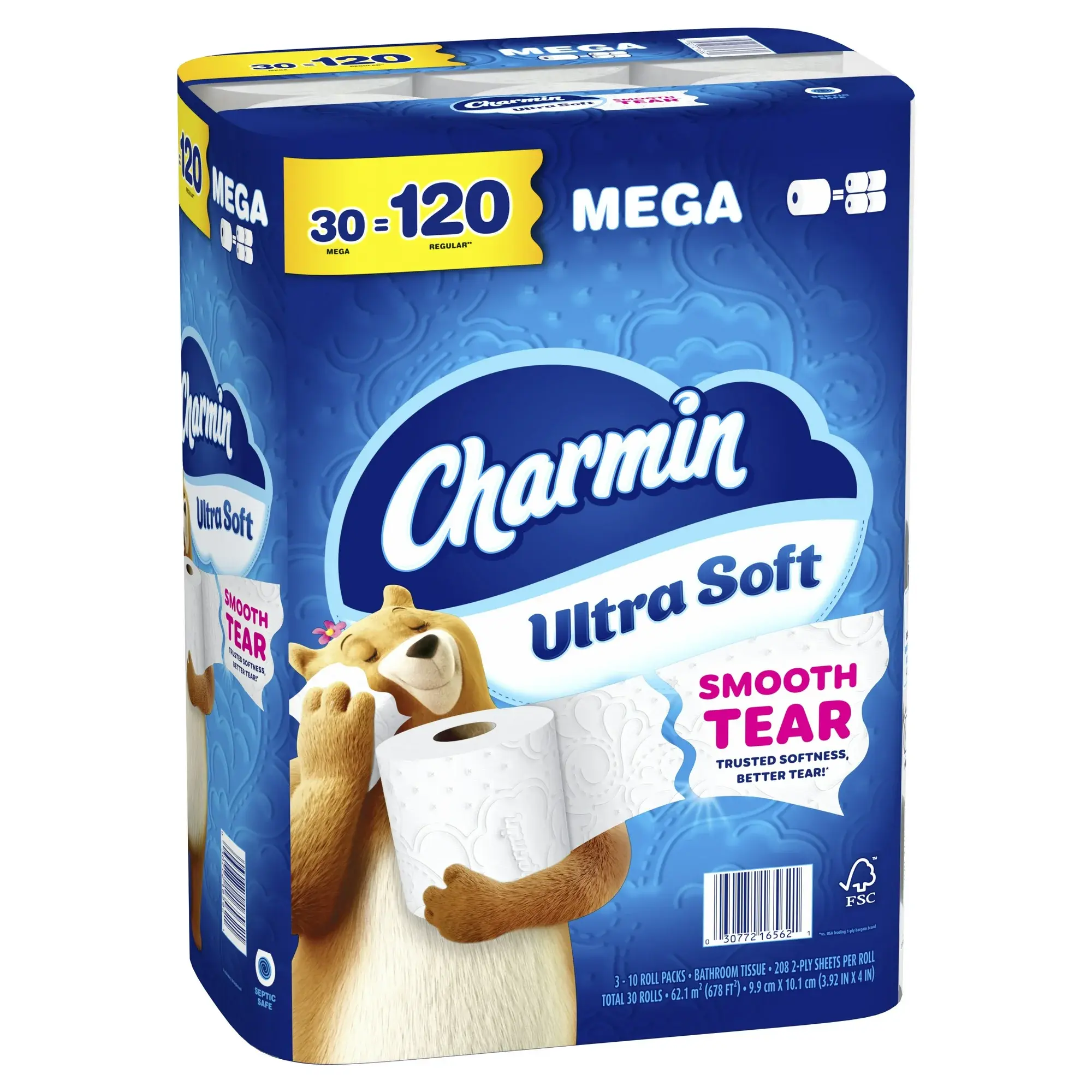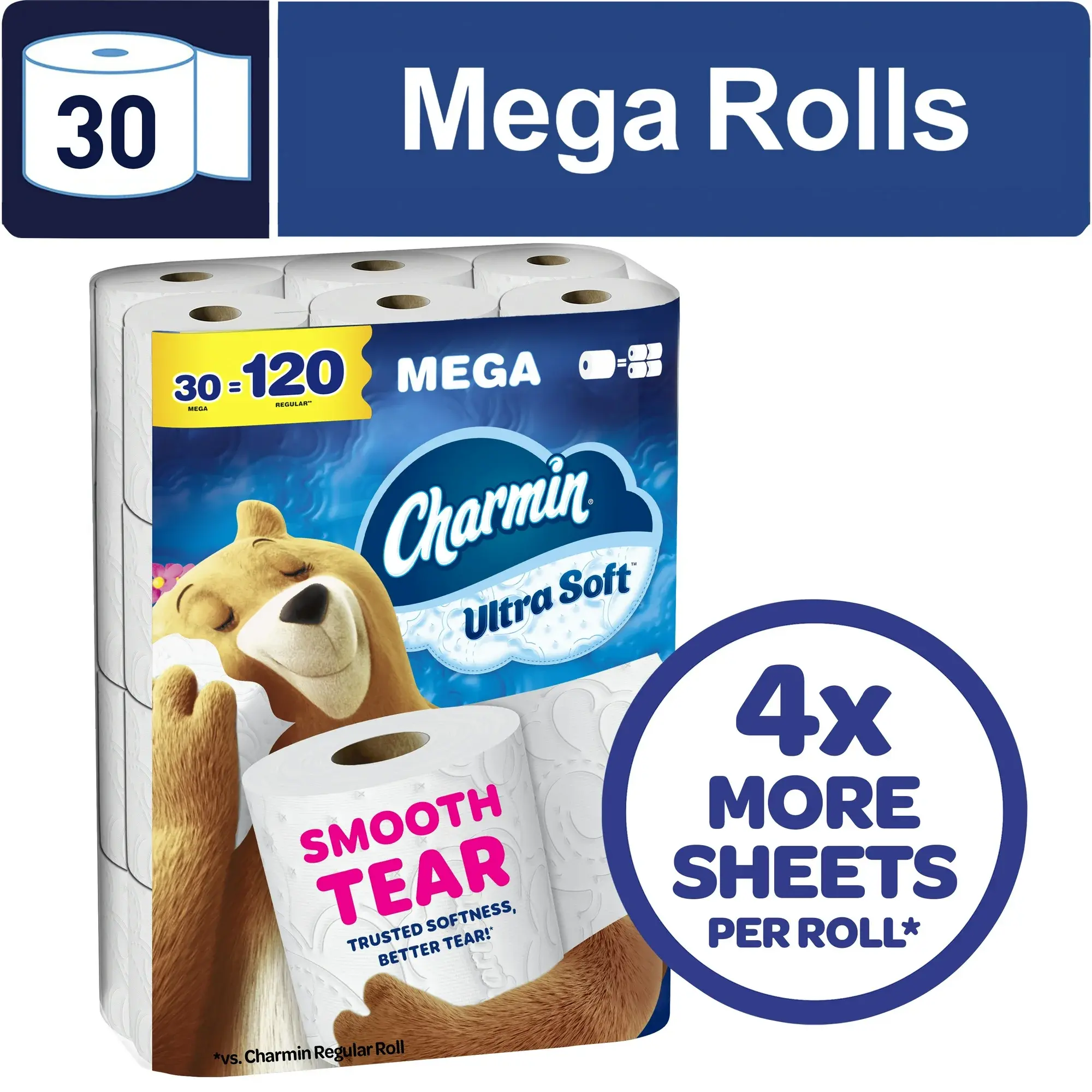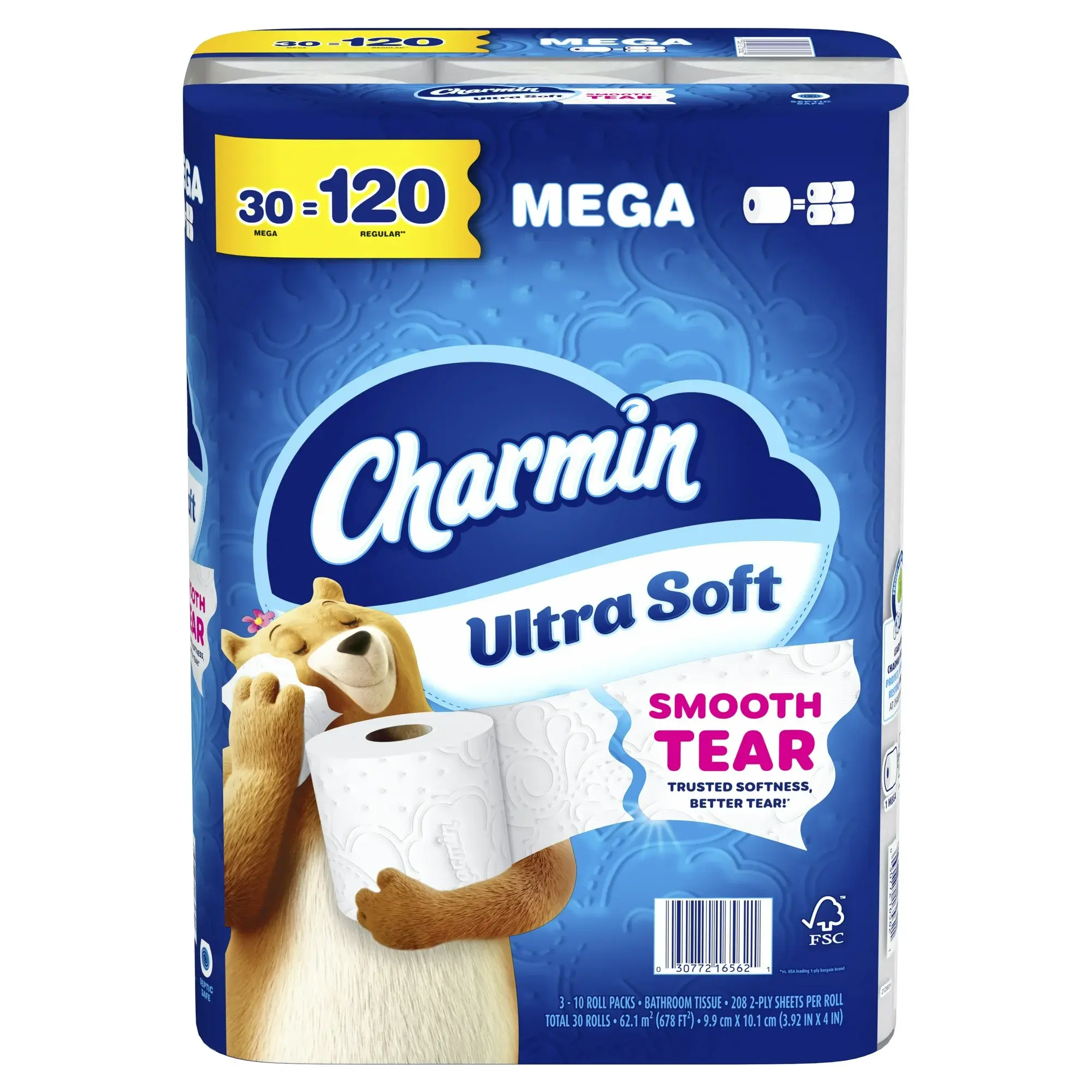 ·MEGA ROLLS, MEGA VALUE: Pack contains 30 Mega Rolls (208 Sheets Per Roll) of Charmin Ultra Soft Toilet Paper