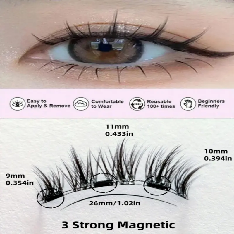 No Glue Magnetic Eyelashes, Reusable Natural Style Fake Lashes, Easy to Apply Magnet Eyelashes Without Adhesive, Eye Makeup Products