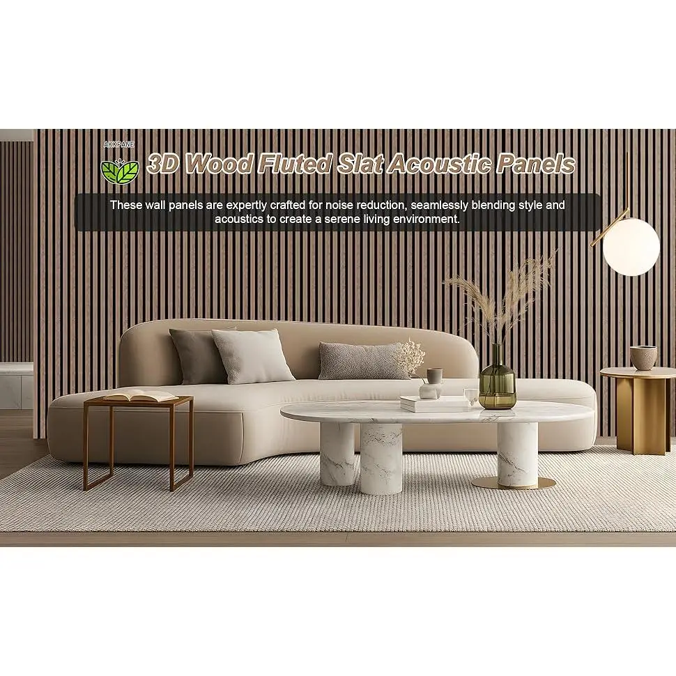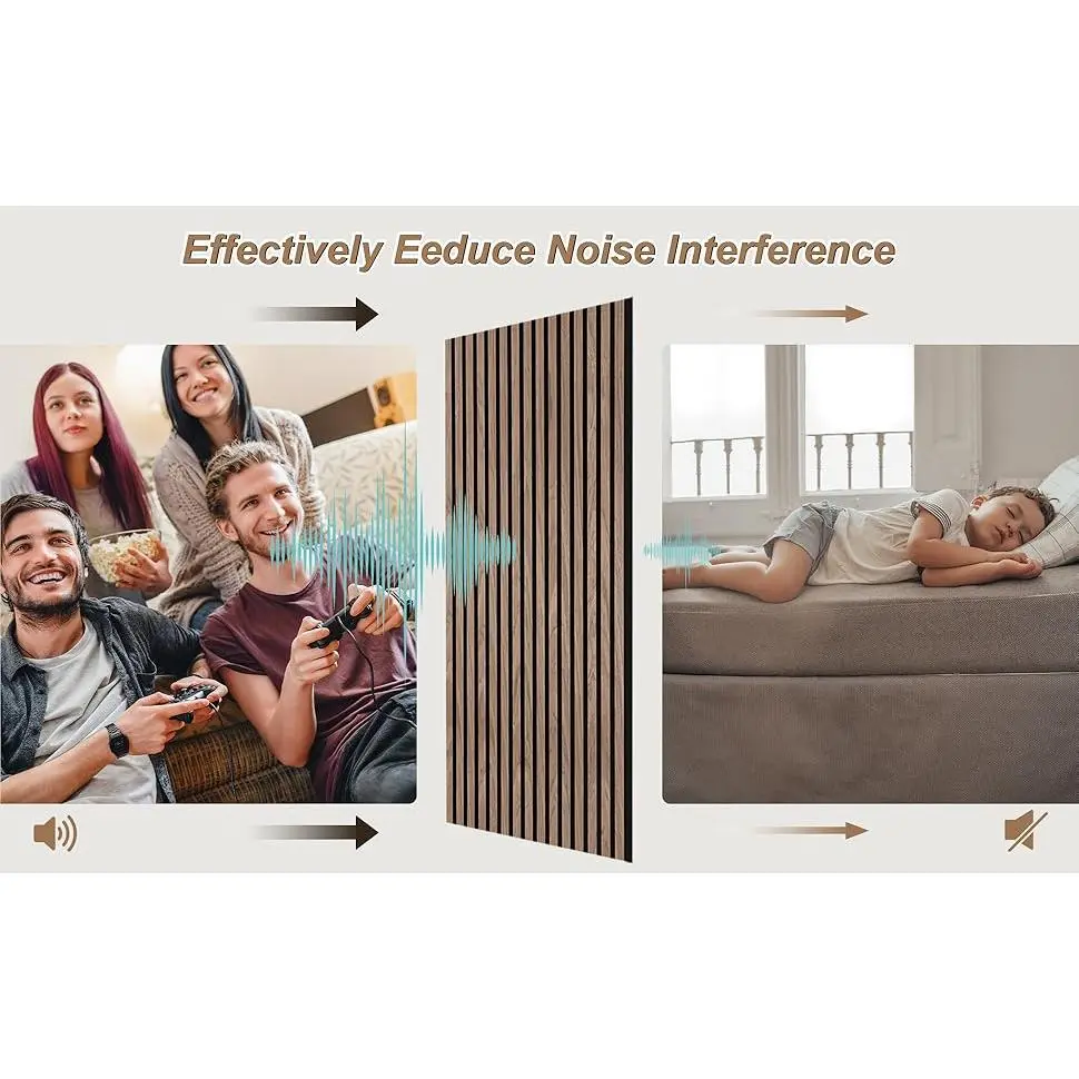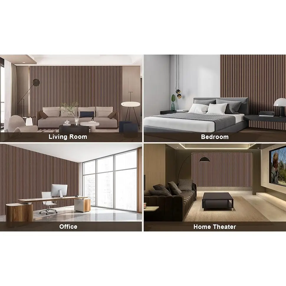 Studio-Grade Sound Control: These acoustic wall panels are designed to absorb sound and reduce noise, making them an excellent choice for interior wall decor and space where quiet and peace are essential.By minimizing echo and absorbing unwanted noise, these wood panels create a more comfortable environment.Whether you're enjoying a movie night or working in a home office, these slat wall panels ensure a quieter experienceModern Wood Panel Design: Featuring a modern fluted wood slat design, these fluted wall panels are elegant to any interior wall decor.These sleek, vertical wall slats not only enhances the aesthetic of the room but also complements the diversity of interior styles, from contemporary to traditional.These wood panels are perfect for creating a stunning accent wall or transforming an entire room into functional spaceEasy-to-Install: These 47.2x23.6x0.7-inch panels are simple to install for soundproofing and wall decor.These wooden wall panels mount effortlessly with screws or adhesive .PET substrate is easy to cut, enabling DIY-friendly installation within 30 minutes.Simple installation ensure that even those with minimal DIY experience complete quickly.Whether you’re updating a home office or creating a feature wall, these panels offer a effective solutionVersatile Application: These wall panels are perfect for creating accent walls, home theaters, or office spaces, these panels offer a functional and decorative upgrade to any room.Their versatility makes them ideal for a wide range of applications, from residential spaces to commercial environments.Whether you're looking to enhance the acoustics of a room or add decorations to walls, these panels wall decor provide a practical and stylish solutionEco-Conscious Materials: Formaldehyde not detected (
