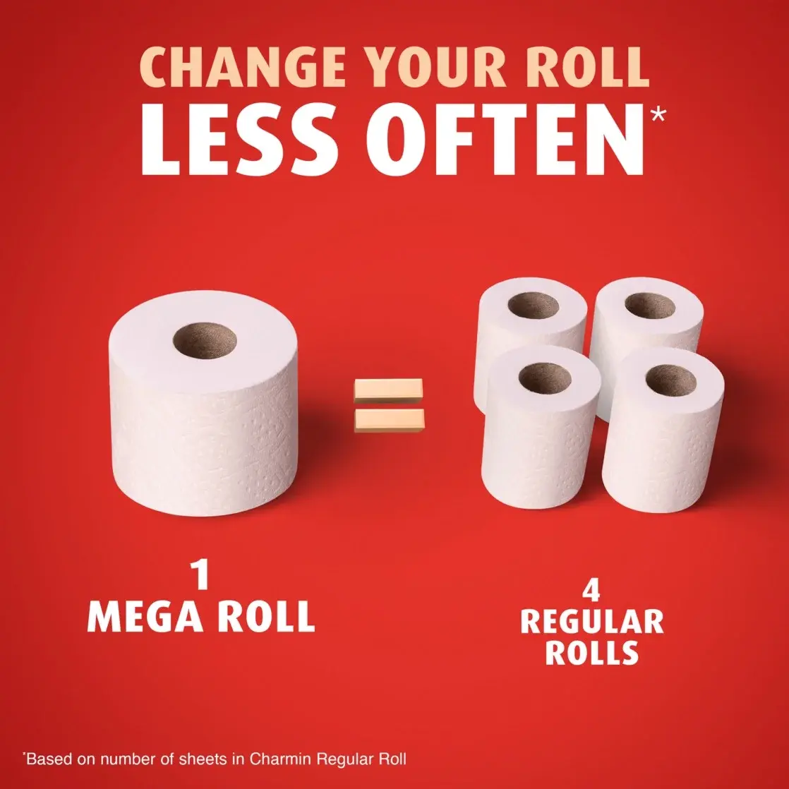 Get sparkly clean with Charmin Toilet Paper Ultra Strong. It's 4X stronger when wet* and has a diamond weave texture. It's woven like a washcloth and it holds up when you wipe. It even cleans better so you can use less* and go longer without changing the roll**. We made it MEGA XL in size, so you get extra large mega value. That's right, our Charmin Totilet Paper Ultra Strong Mega XL Roll equals 6 regular rolls (based on number of sheets in Charmin Regular Roll bath tissue), so you'll be running back to the store less and less. Our Charmin Toilet Paper Ultra Strong toilet paper is also 2-ply and designed to be clog-safe and septic-safe so you can flush confidentially and keep clean. Never want to run out of Charmin? Buy in bulk size, larger count packs! We all go, why not Enjoy The Go with America's favorite toilet paper***.*vs. leading USA 1-ply bargain brand** vs. Charmin Mega Roll***Charmin Brand based on sales. Source: Nielsen 2022 dollar sales.