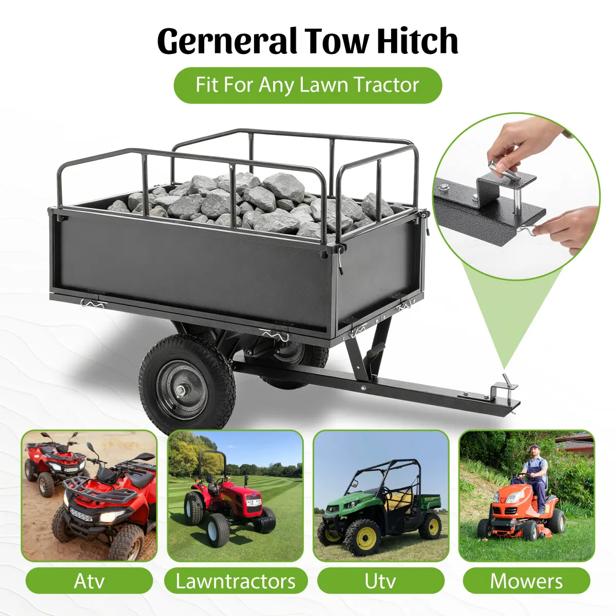 ·[Unmatched Towing Versatility]Engineered with a standard 0.47-inch hitch pin, this dump cart seamlessly connects to a wide range of vehicles.Effortlessly tow it behind your lawn tractor, ATV, UTV, or zero-turn mower for a powerful and adaptable hauling partner that streamlines any task around your property.