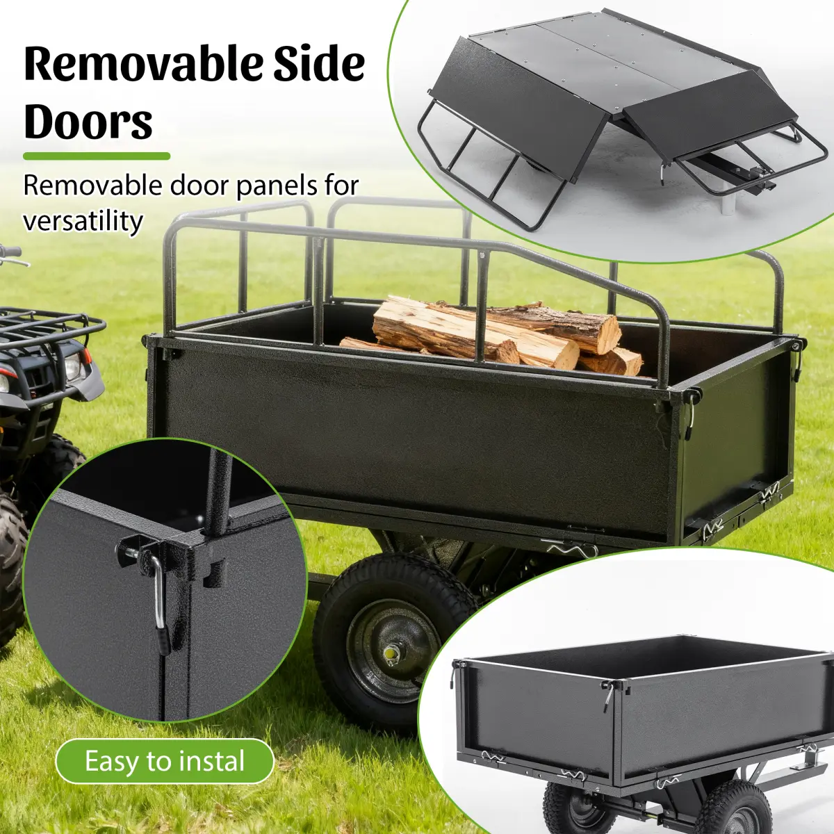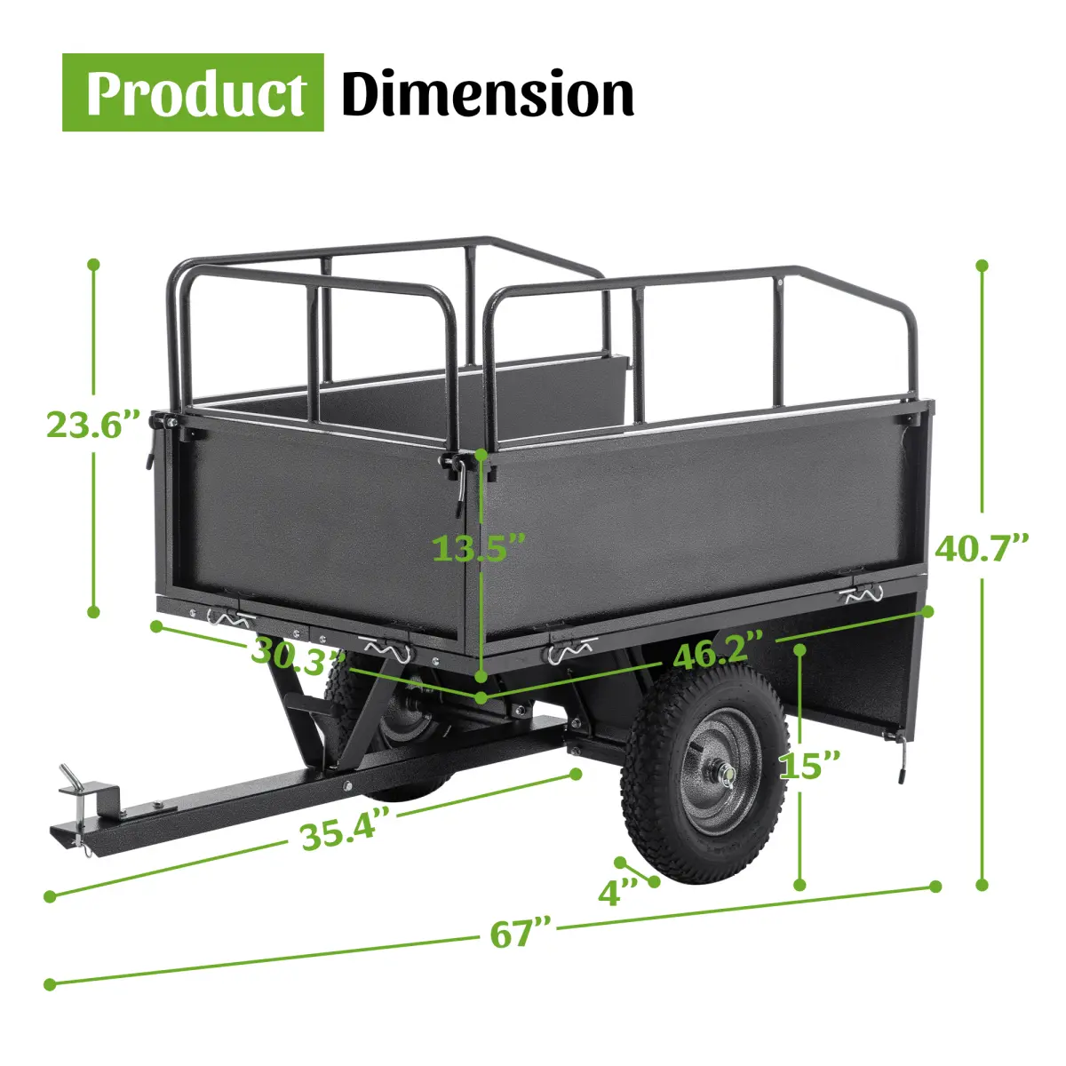 ·[High-Capacity Hauling Performance]Tackle big projects with a massive 17 cubic feet of volume and a 600-pound load capacity.This dump trailer effortlessly transports everything from soil, mulch, and gravel to yard debris and landscaping materials.The three-sided retaining walls maximize usable space, allowing you to move more with fewer trips.