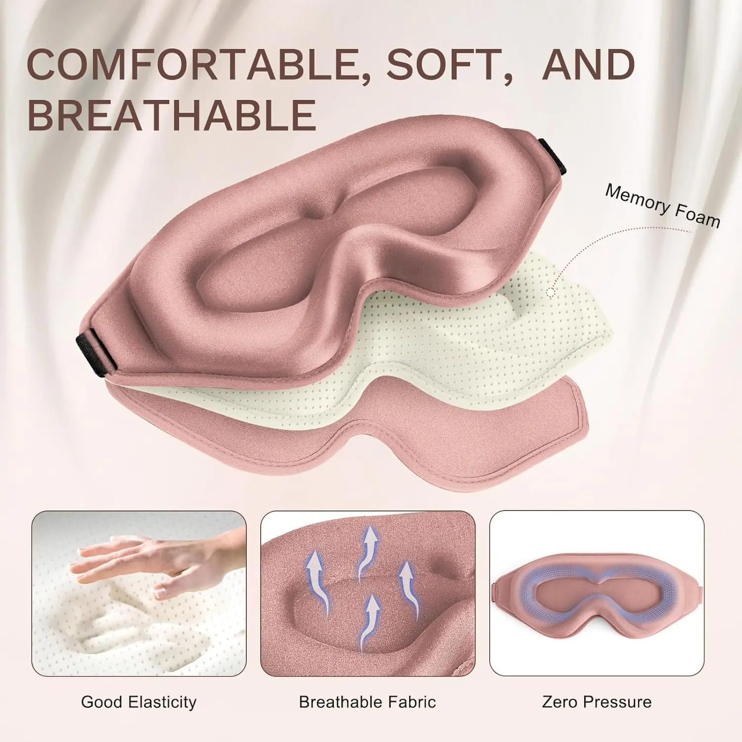 Weighted Blackout Sleep Eye Mask - Zero Eye Pressure for Lash Extensions | Soft Memory Foam Travel Eye Cover for Women Men (Pink)