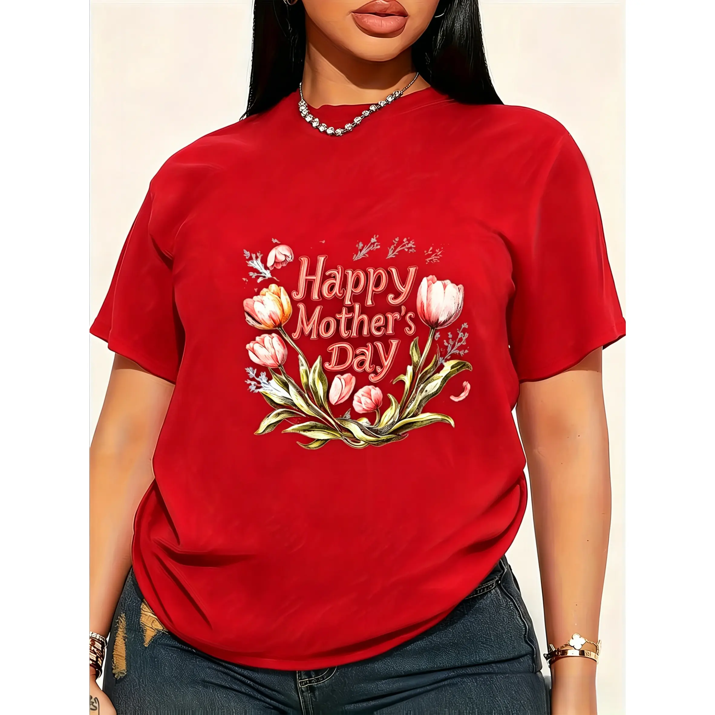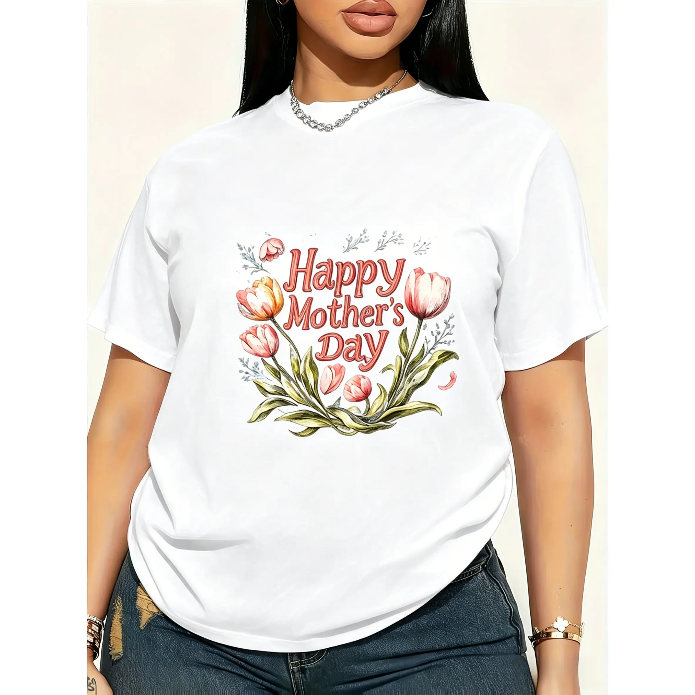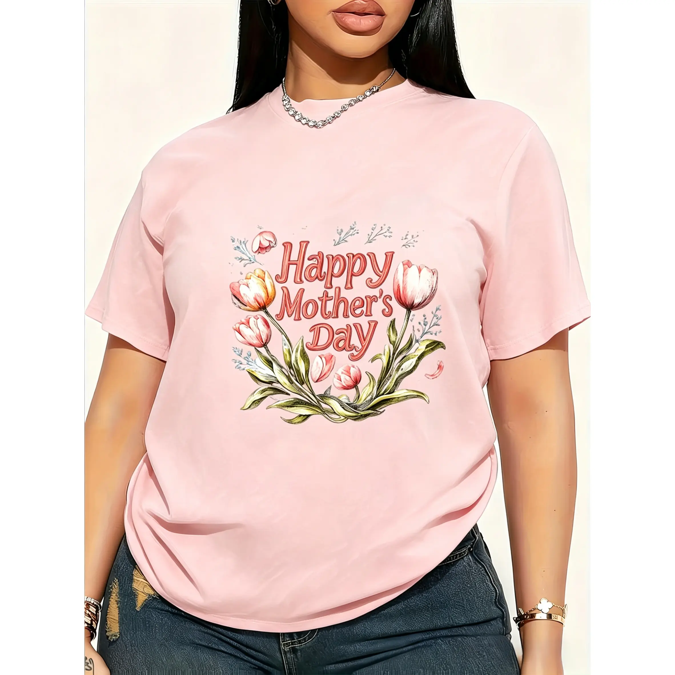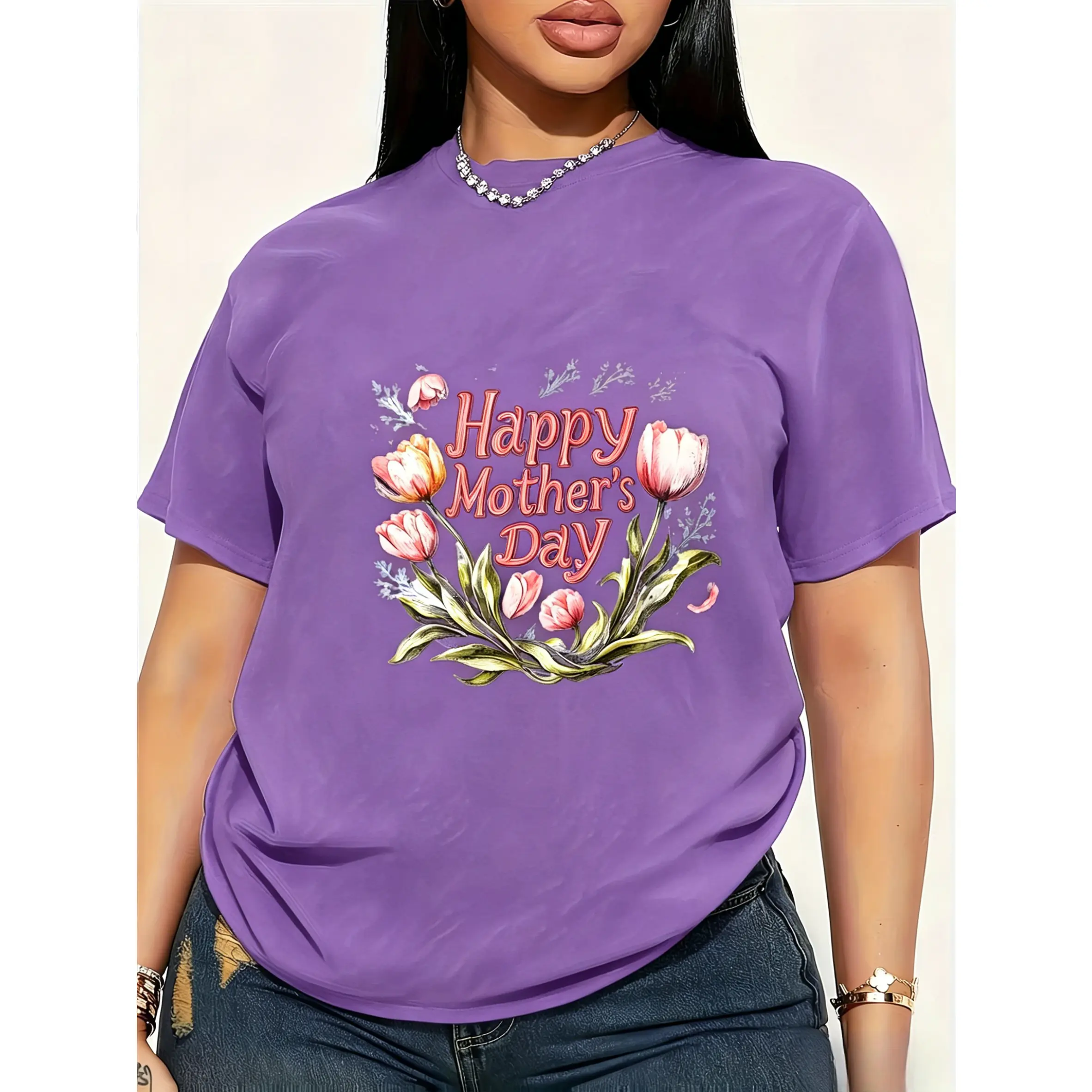 100% cotton, unisex T-shirt, comfortable and soft, Happy Mother's Day round-neck style, soft and comfortable, light and breathable, suitable for spring, summer, and autumn