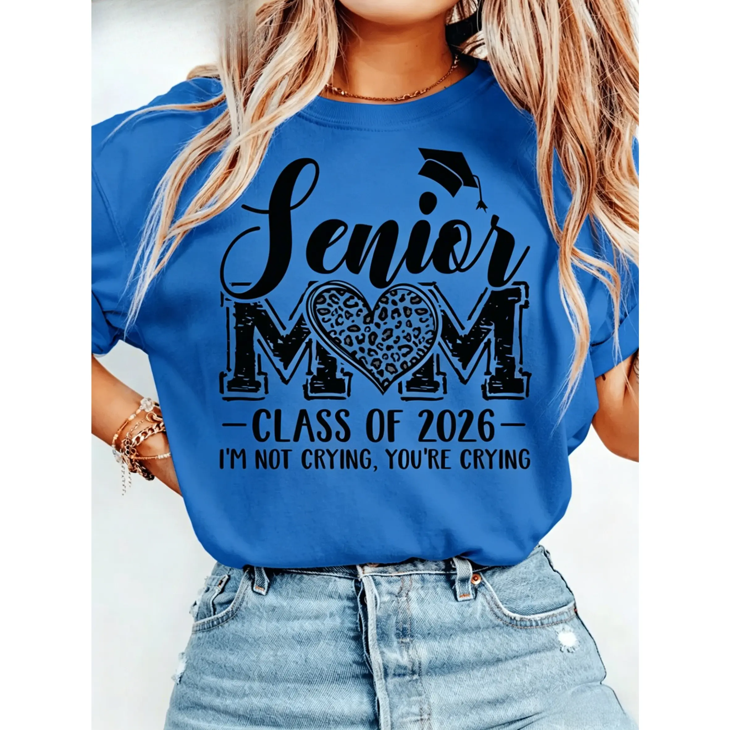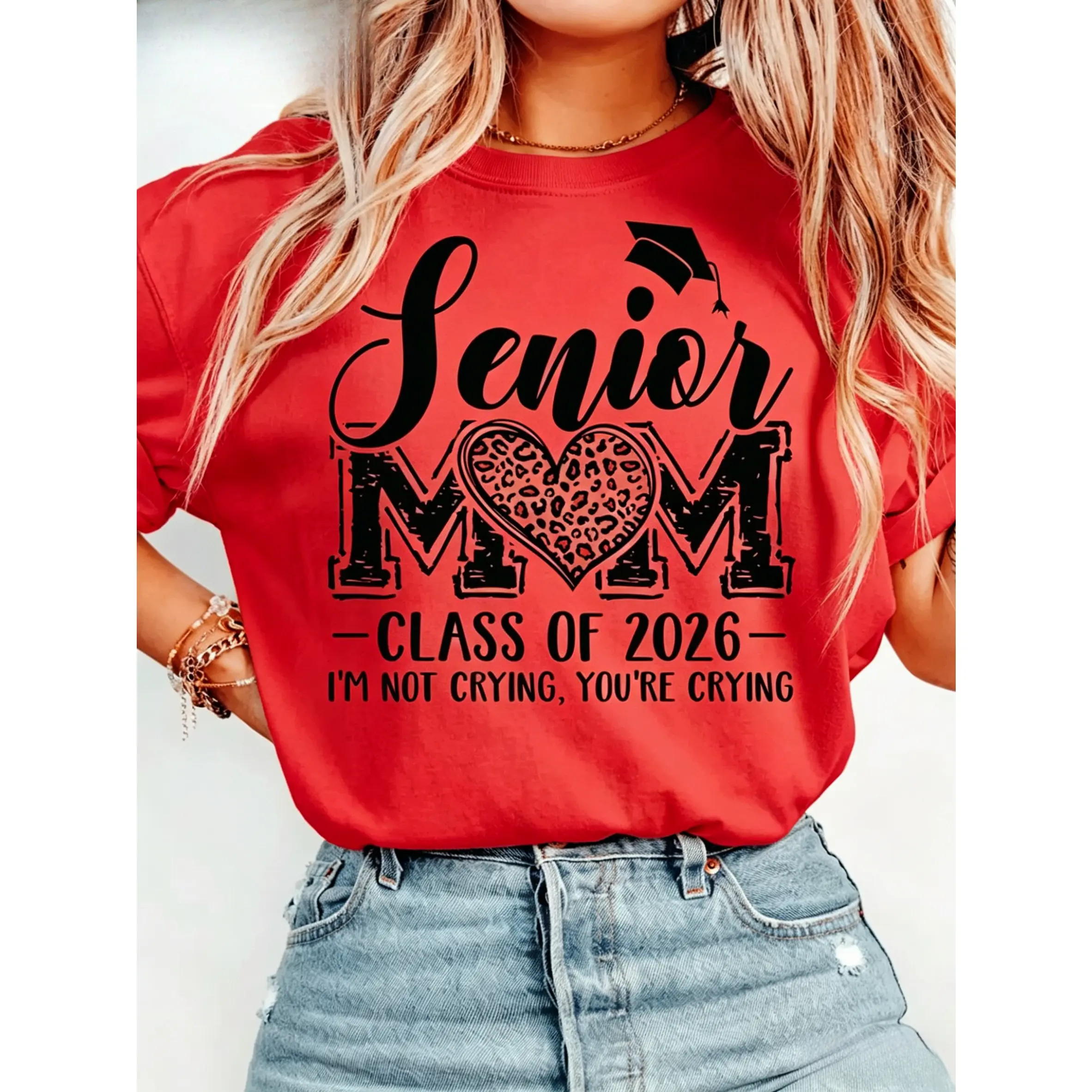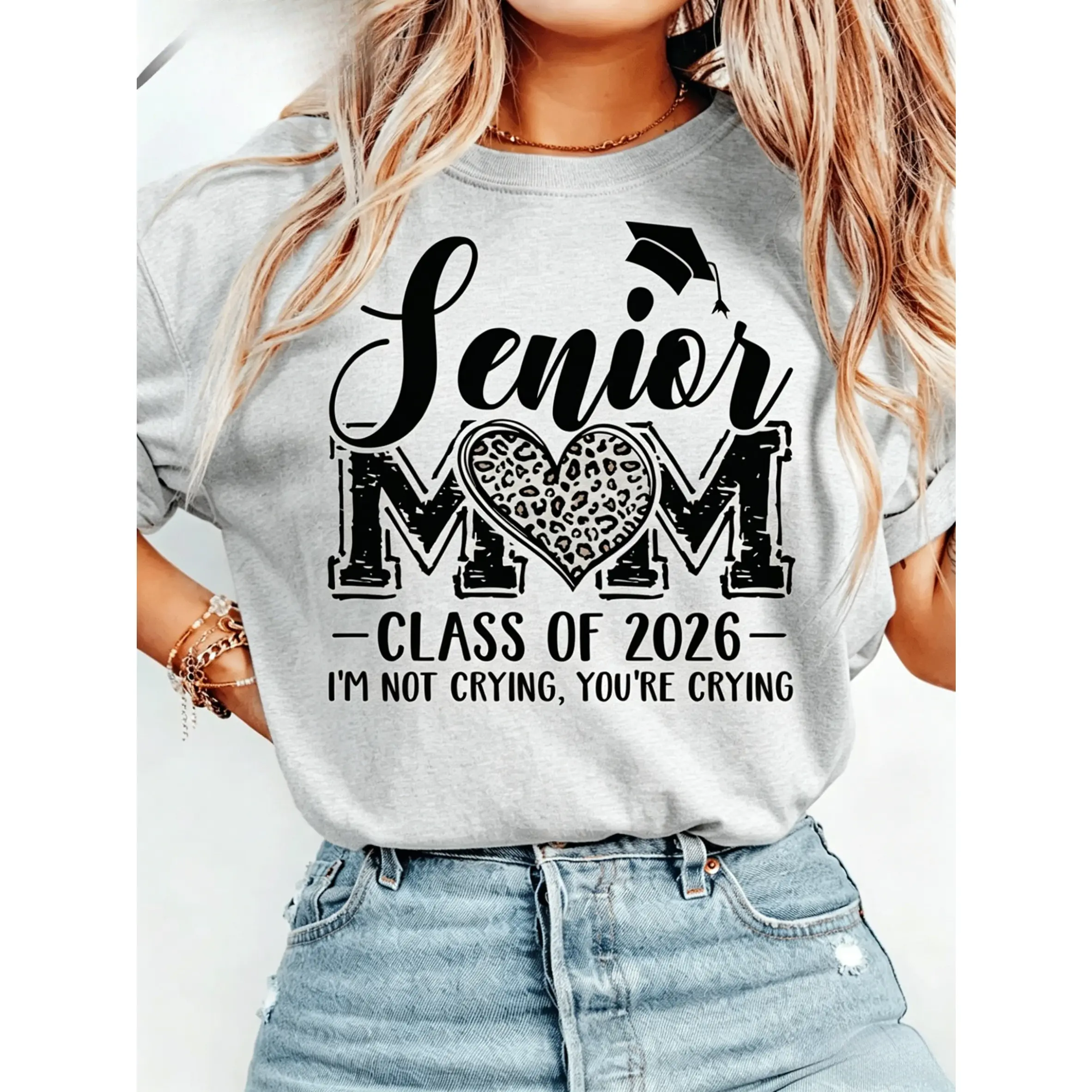100% cotton, women's casual short-sleeve T-shirt - 2026 holiday fun pattern print, short-sleeve round-neck casual party top, machine washable holiday celebration clothing, family party gift