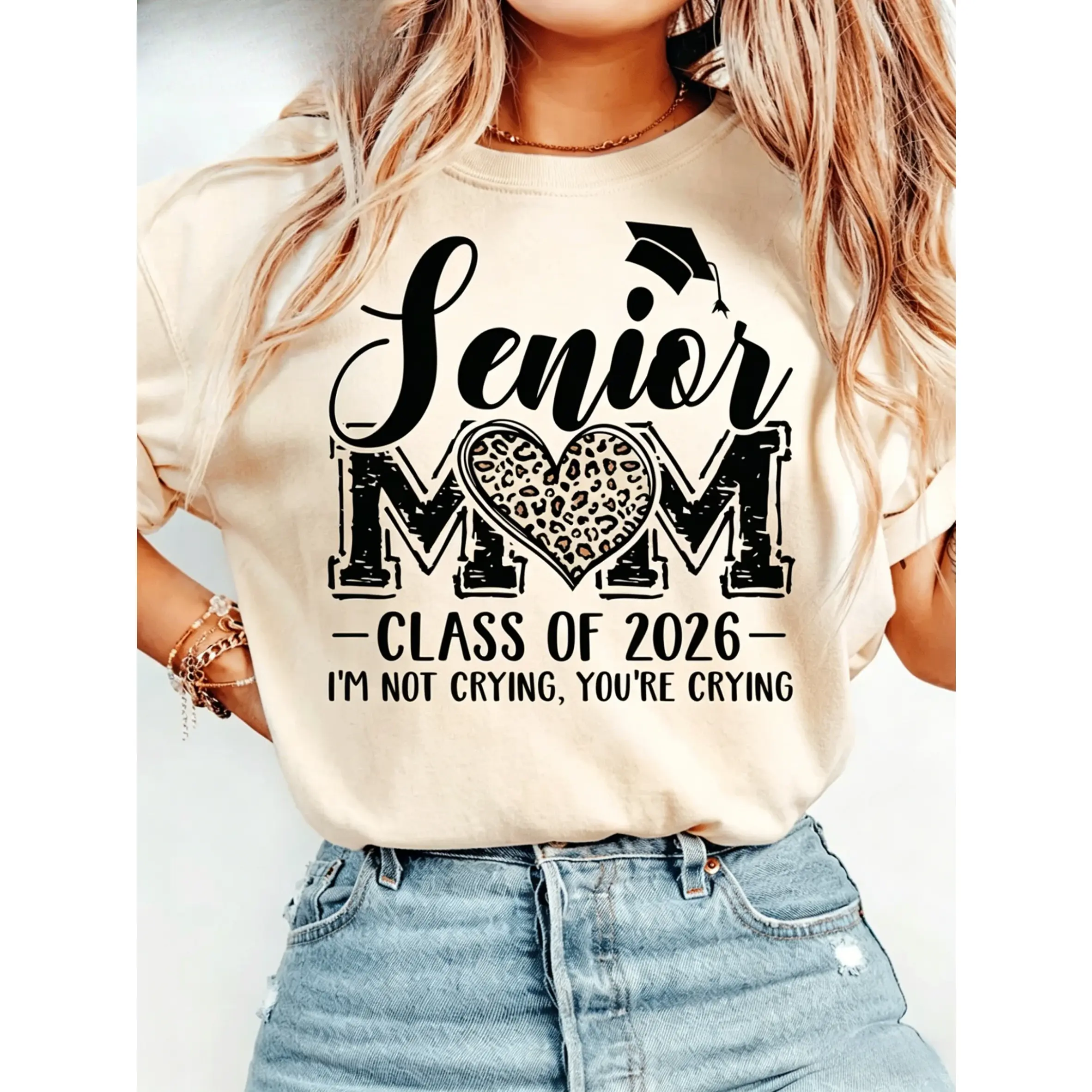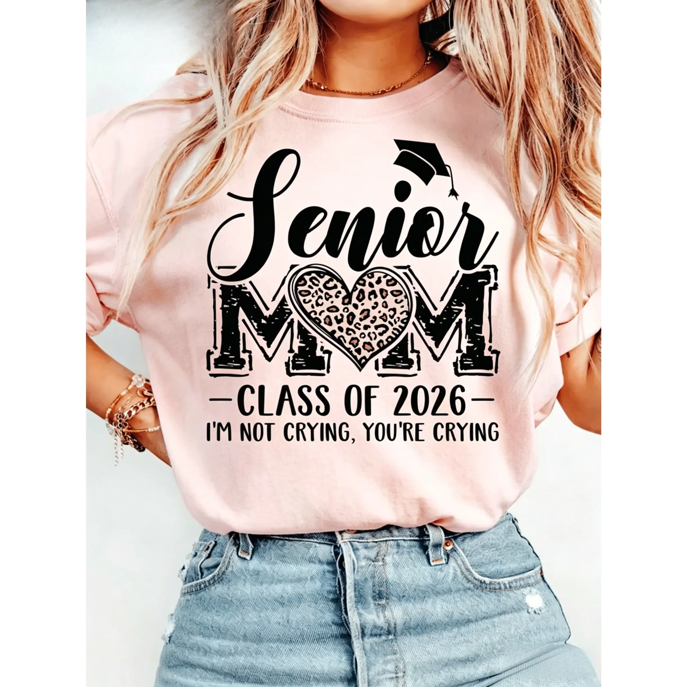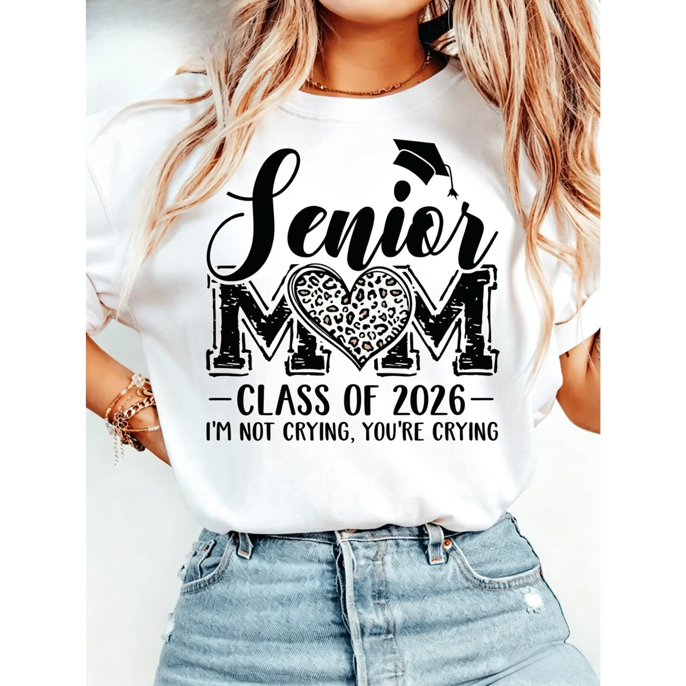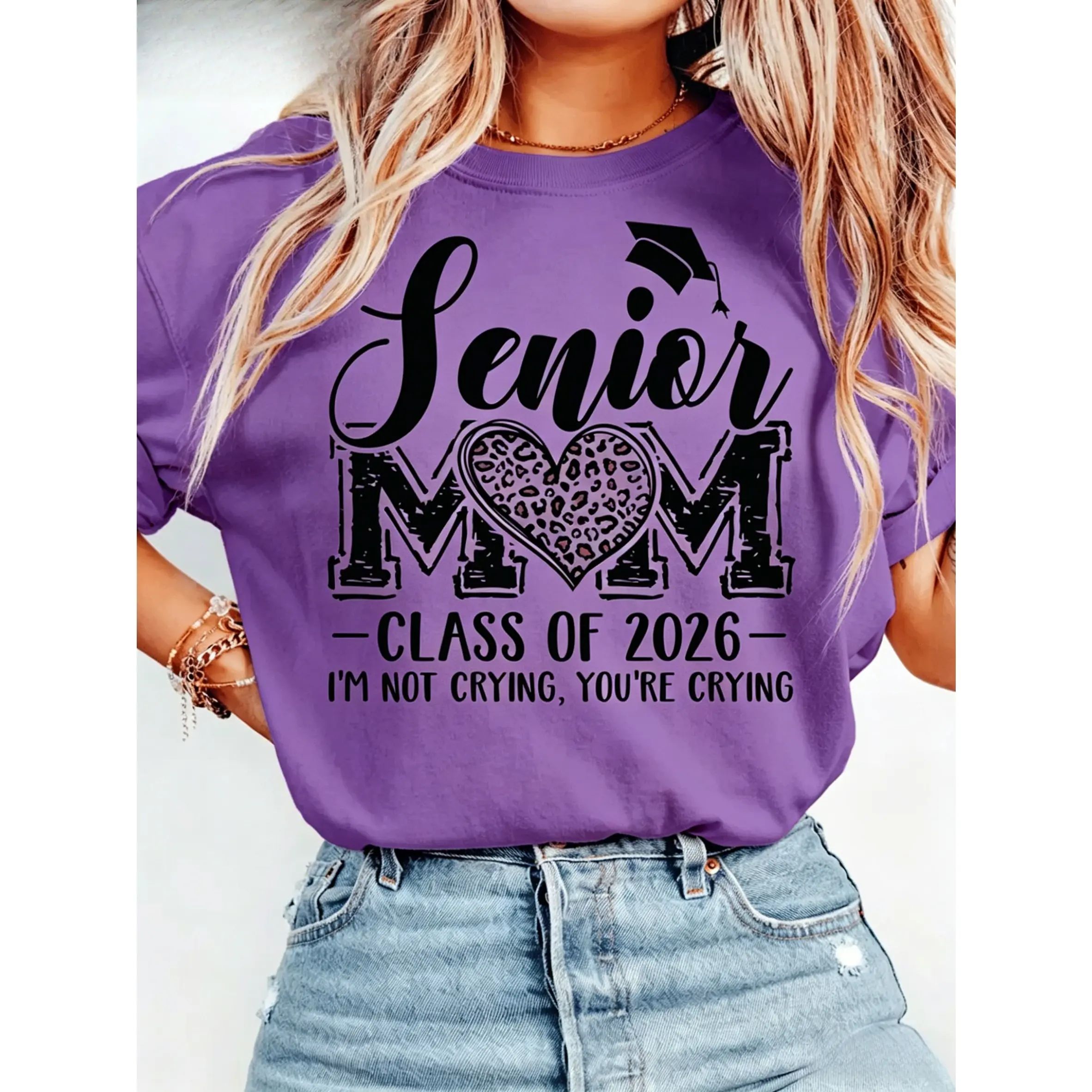 100% cotton, women's casual short-sleeve T-shirt - 2026 holiday fun pattern print, short-sleeve round-neck casual party top, machine washable holiday celebration clothing, family party gift