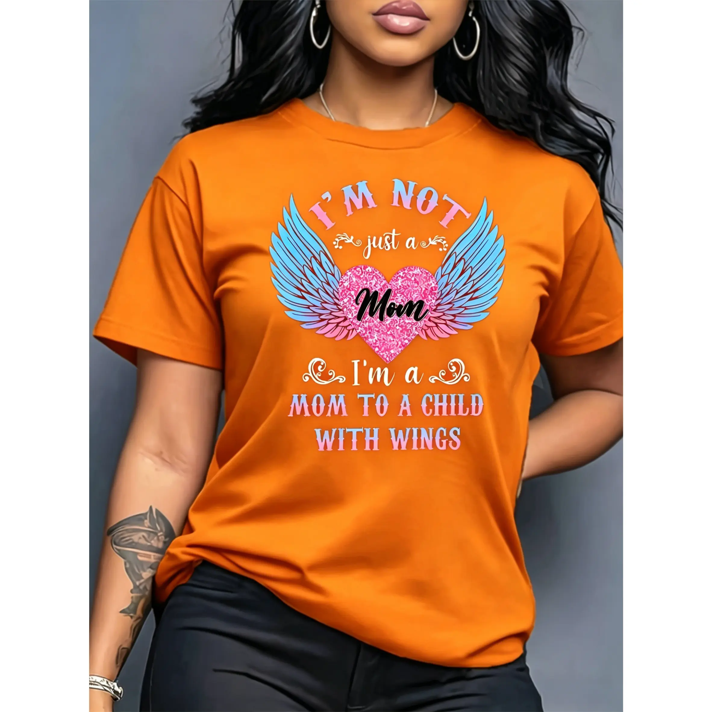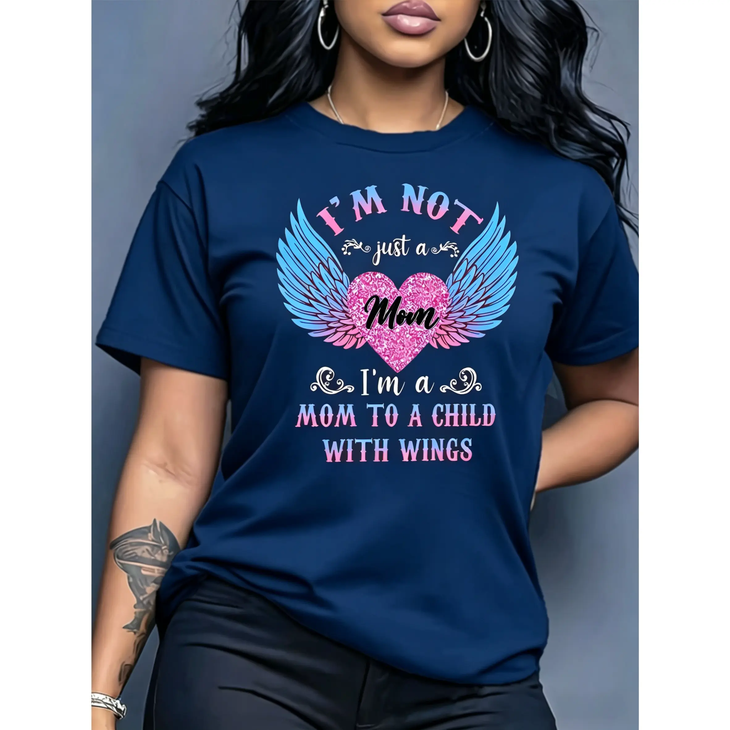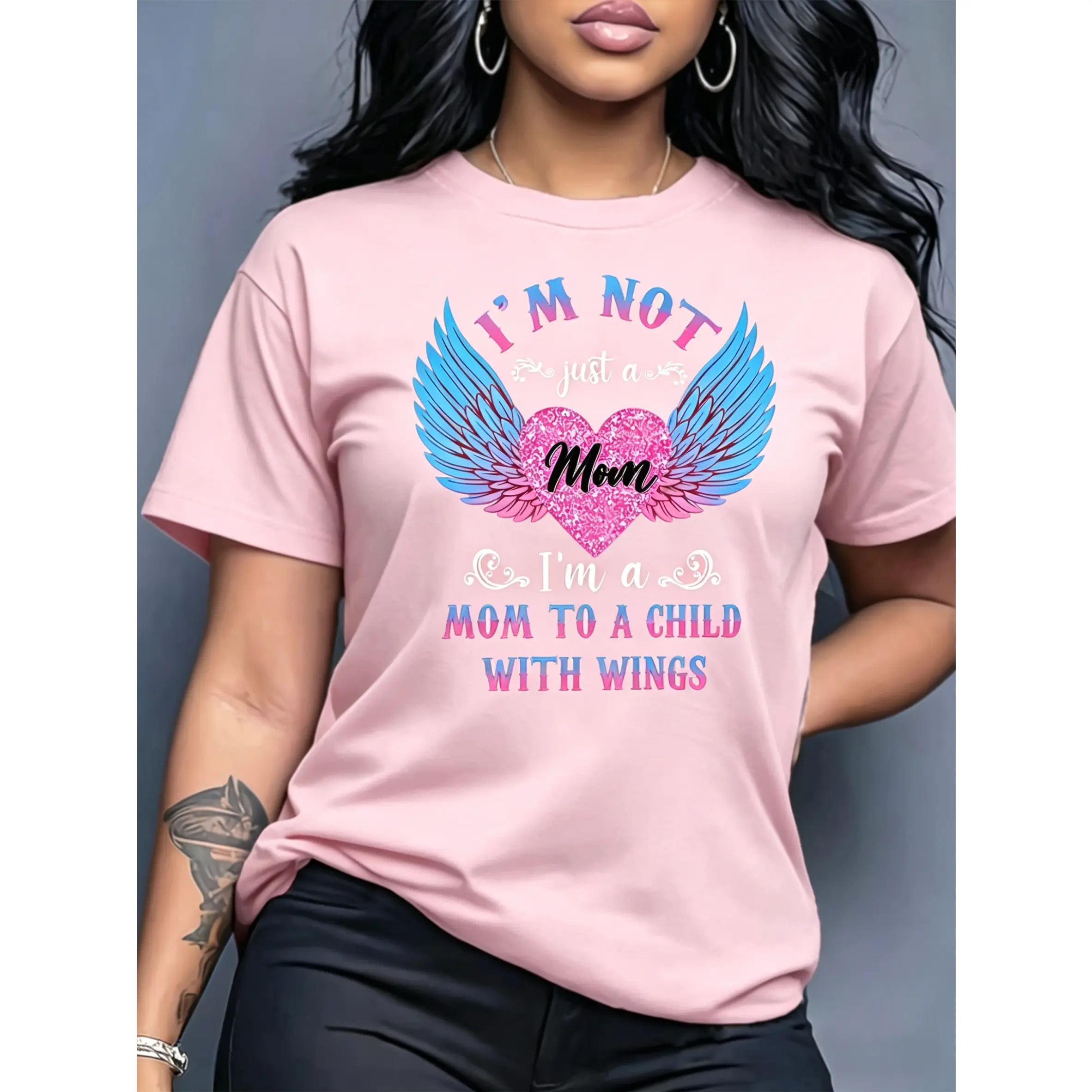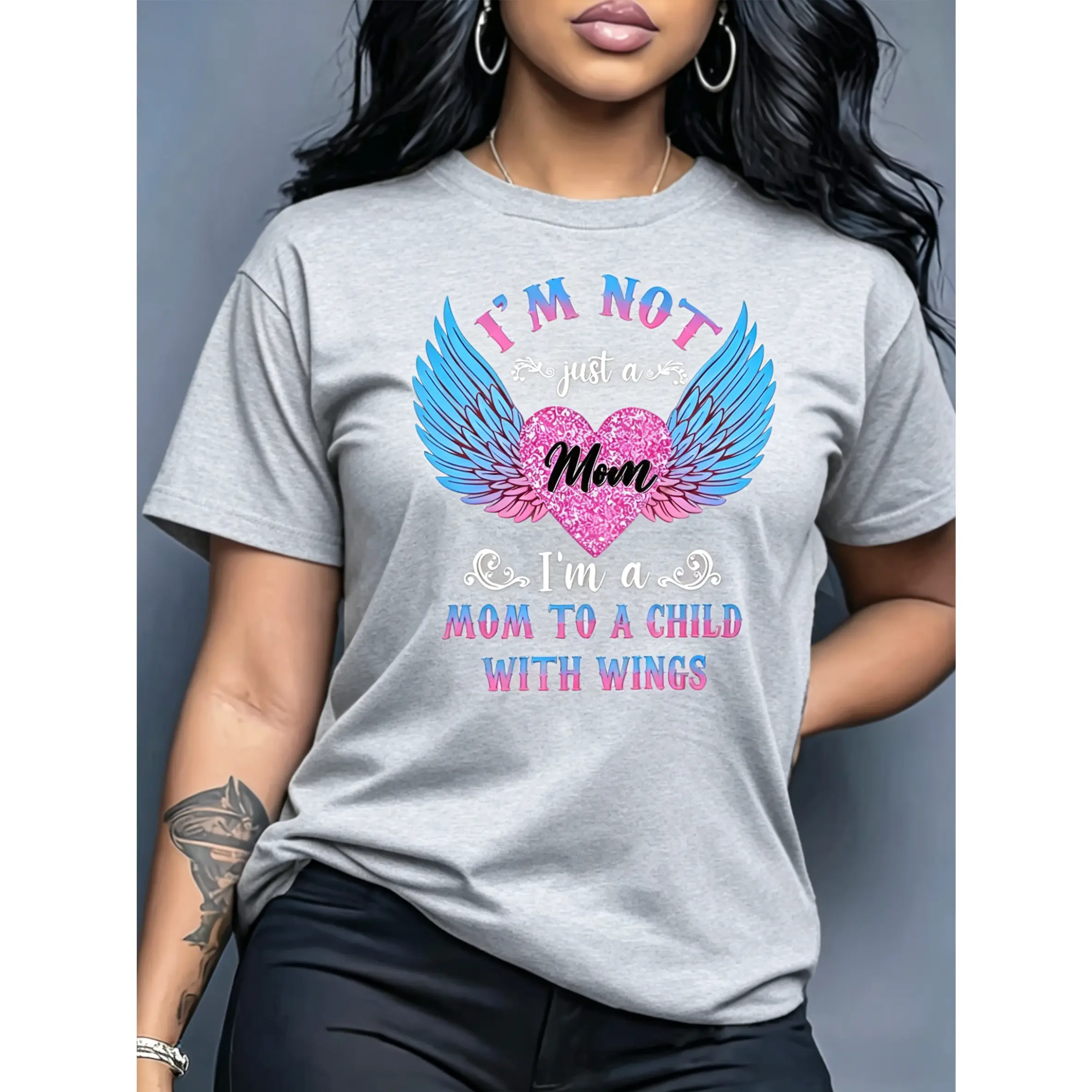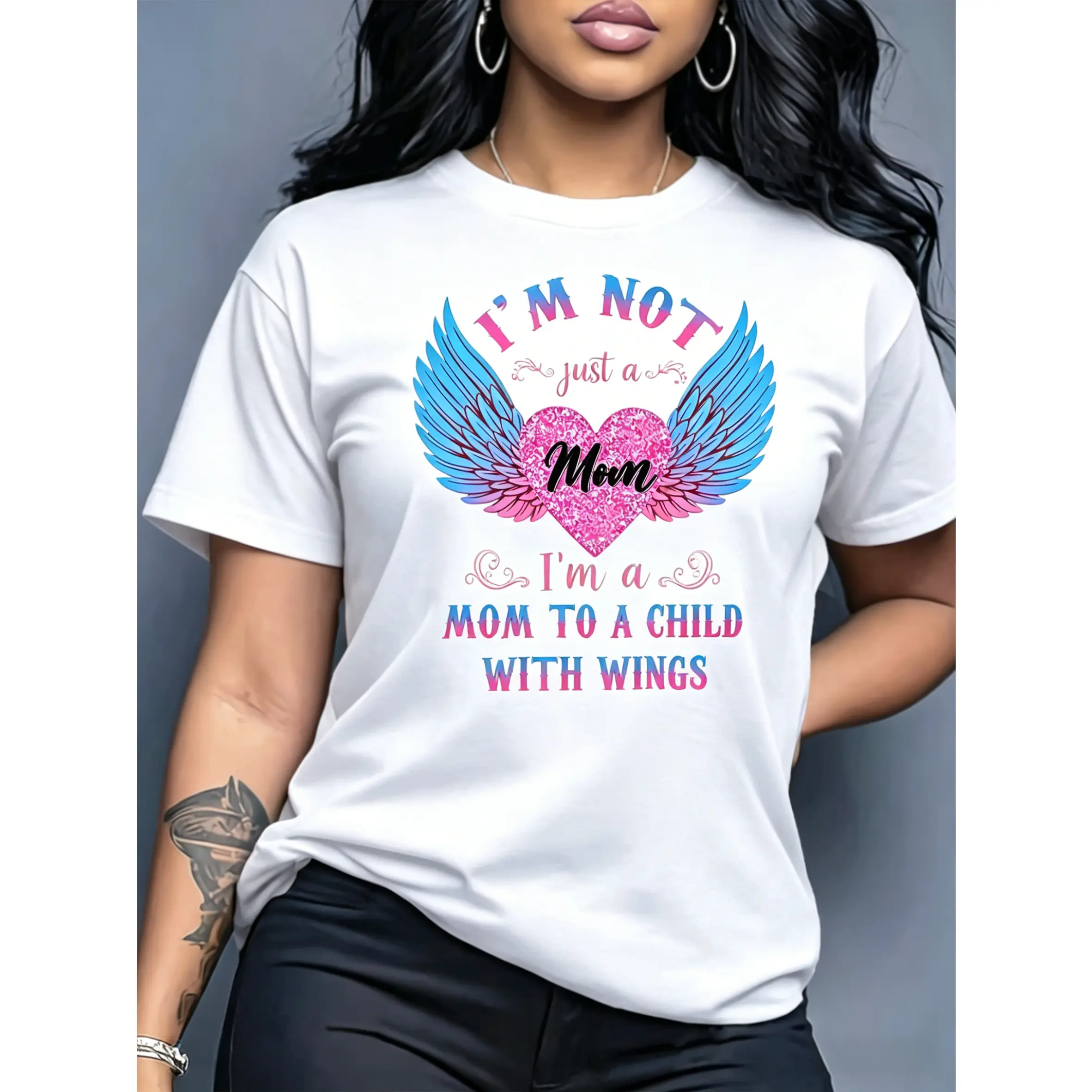 100% cotton women's Mother's Day short-sleeve top, featuring heart-shaped wings and letter prints, round neck design, comfortable and soft, breathable, suitable for spring, summer, and autumn, loose fit, casual and stylish, suitable for everyday wear